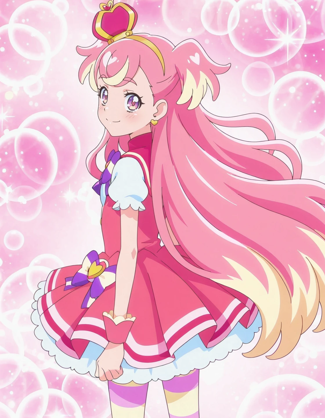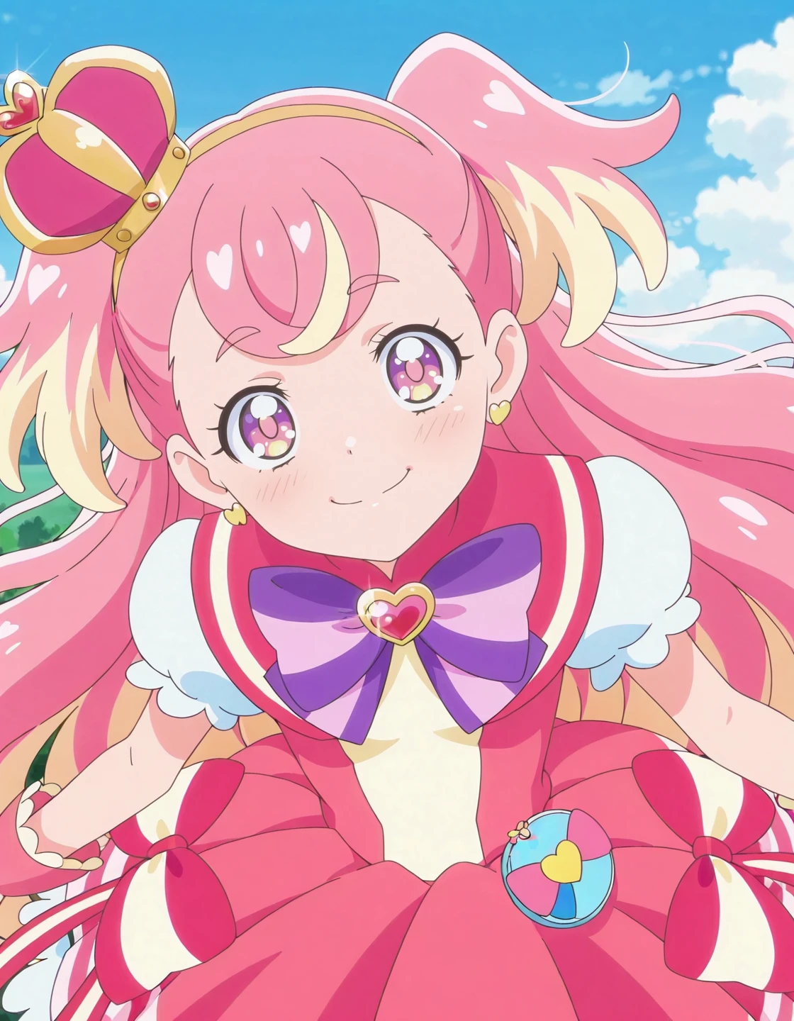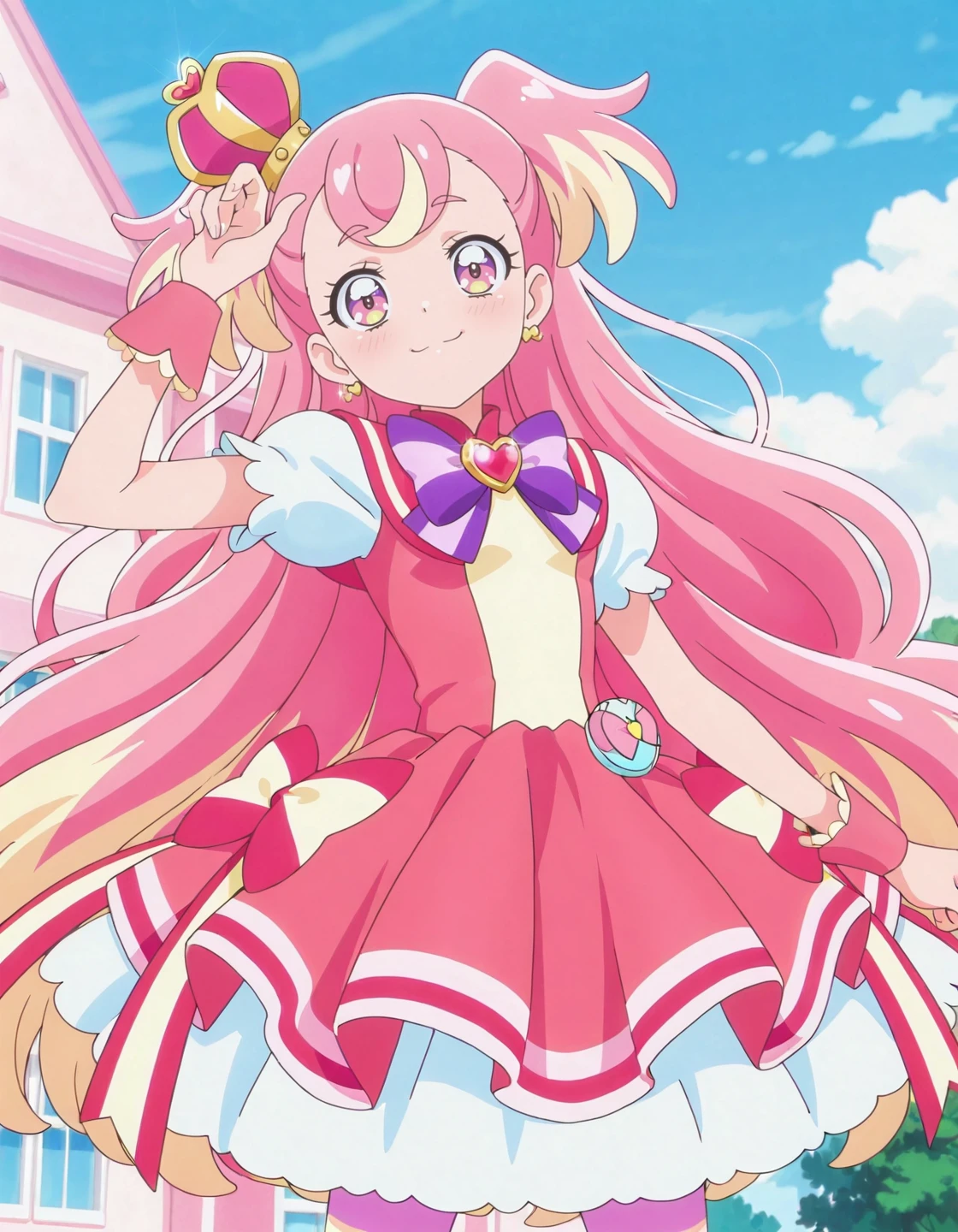 anime screencap, solo,1girl,curewonderful,wonderfulcostume,purple bowtie<lora:curewonderful_IL:0.8> high definition,amazing quality,best quality,very aesthetic,masterpiece,absurdres,