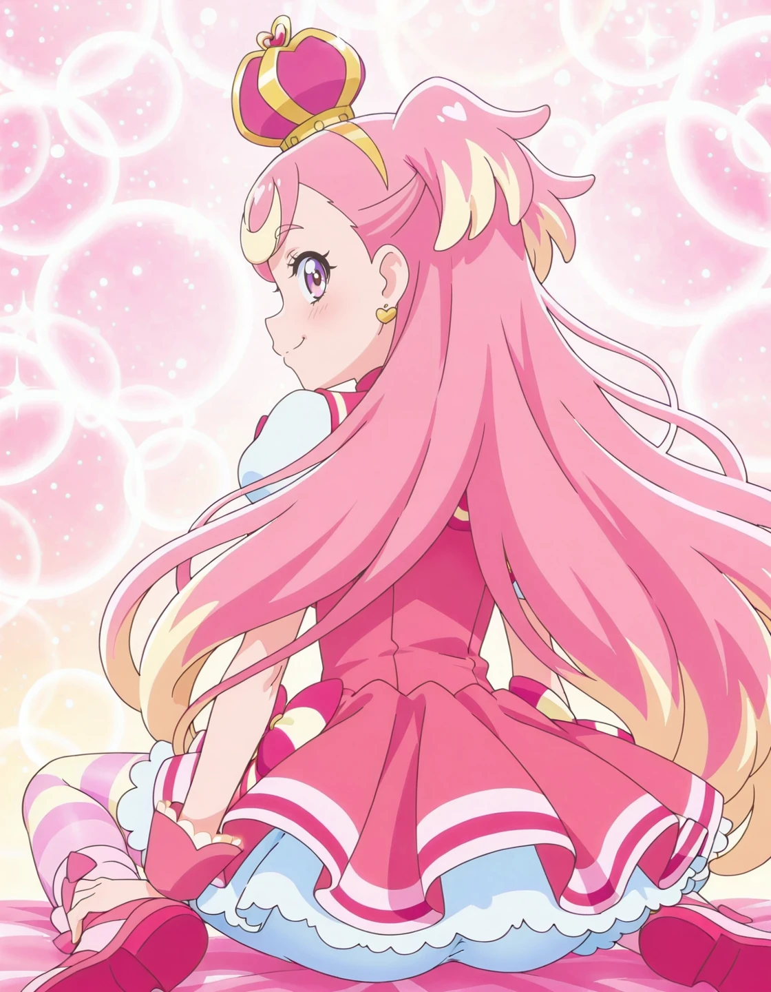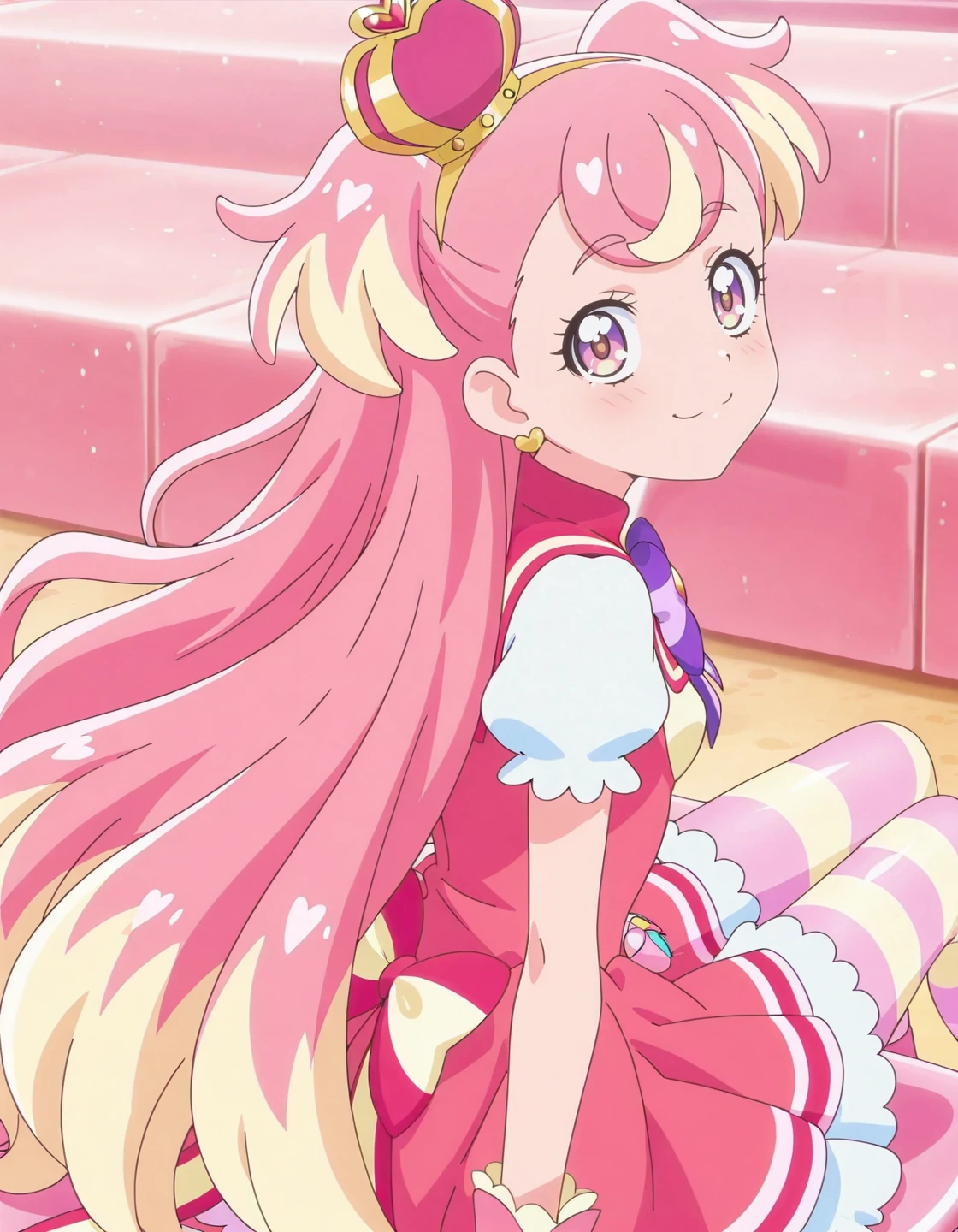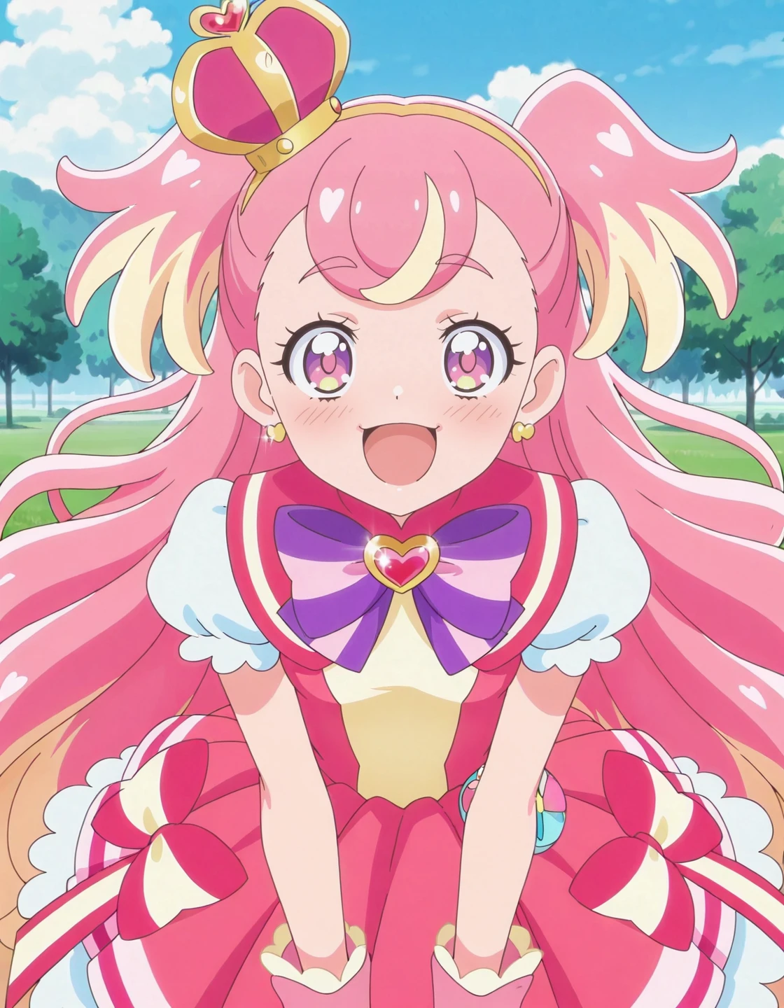 anime screencap, solo,1girl,curewonderful,wonderfulcostume,purple bowtie<lora:curewonderful_IL:0.8> high definition,amazing quality,best quality,very aesthetic,masterpiece,absurdres,