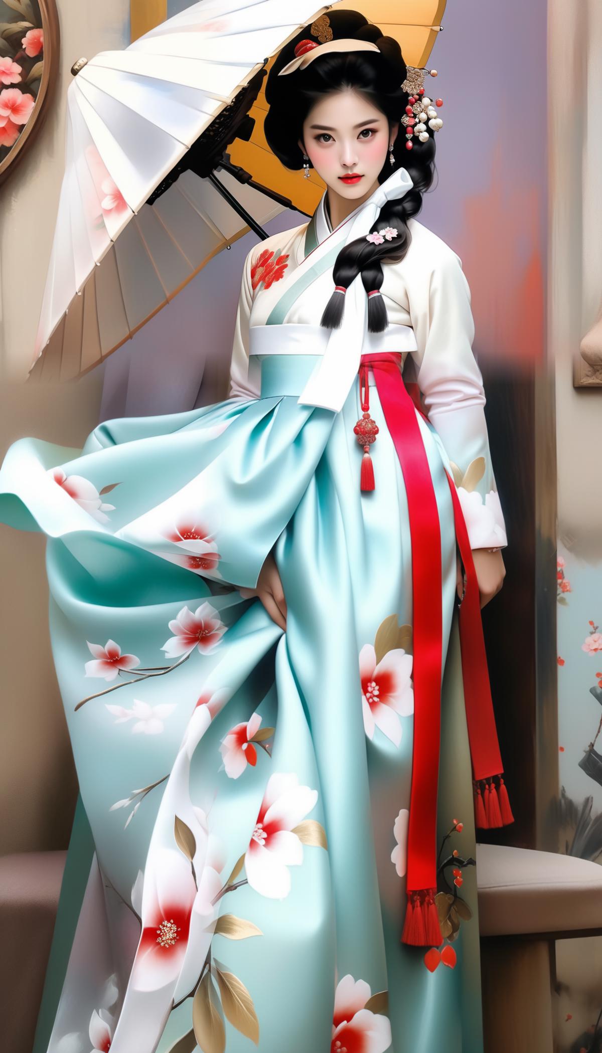 기존 한복 LoRA와 다른 점은 기생이라는 특수 계층의 한복을 훈련시킨 것으로