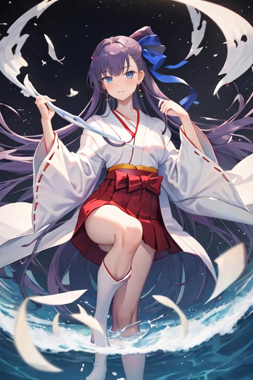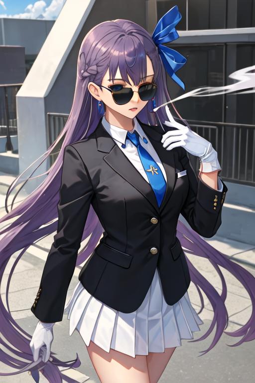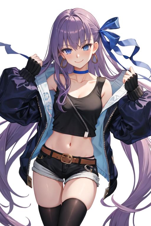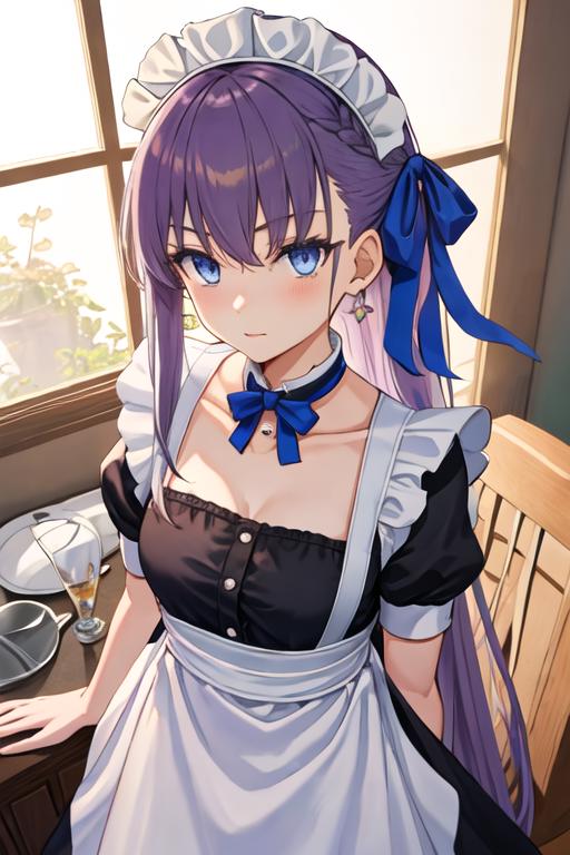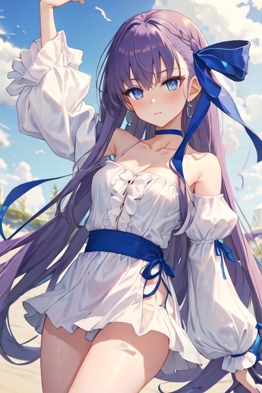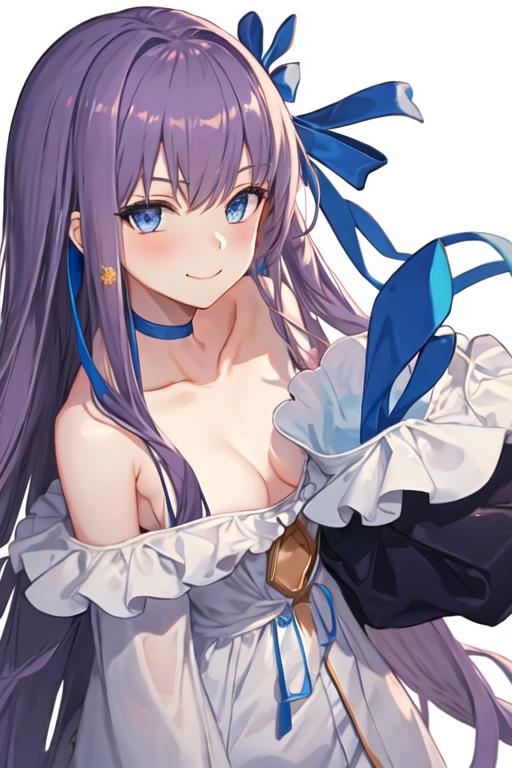 The trigger word is meltryllis_fgo, and the recommended tags are best quality, masterpiece, highres, solo, {meltryllis_fgo:1.15}, long_hair, purple_hair, blue_eyes, bangs, ribbon, hair_ribbon, very_long_hair, breasts, blue_ribbon, small_breasts, blush, collarbone.