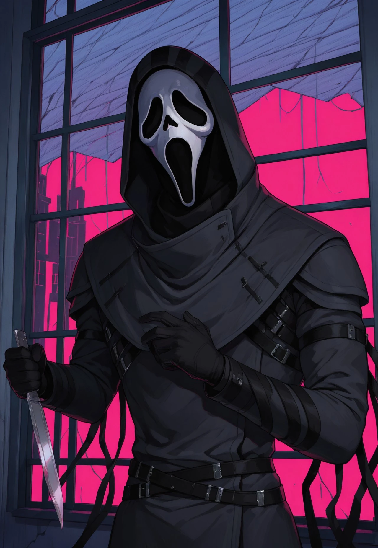 • Scream: 1boy, solo, mask, cloak, gloves, boots
