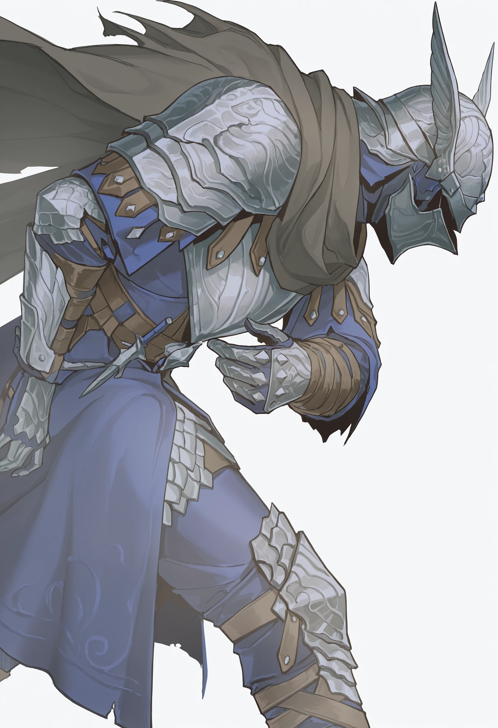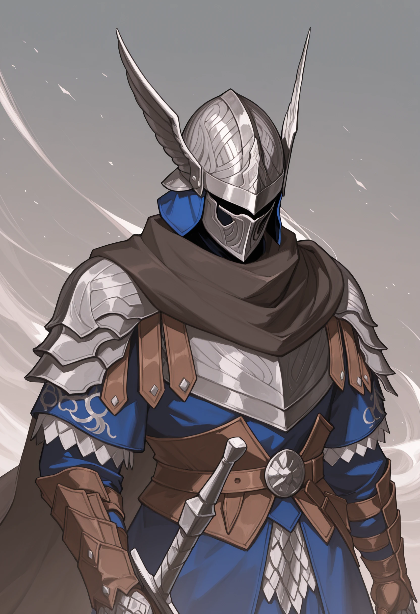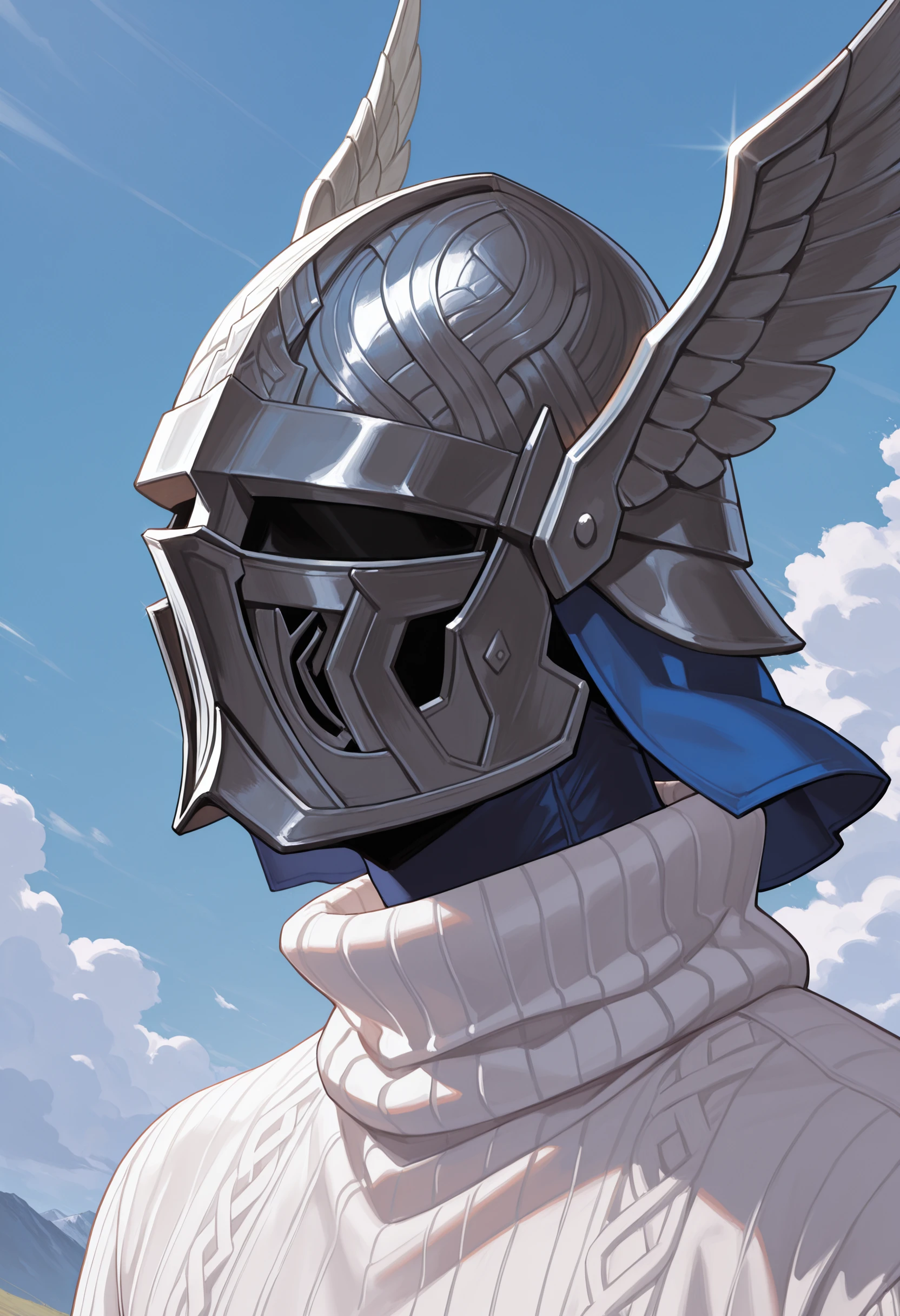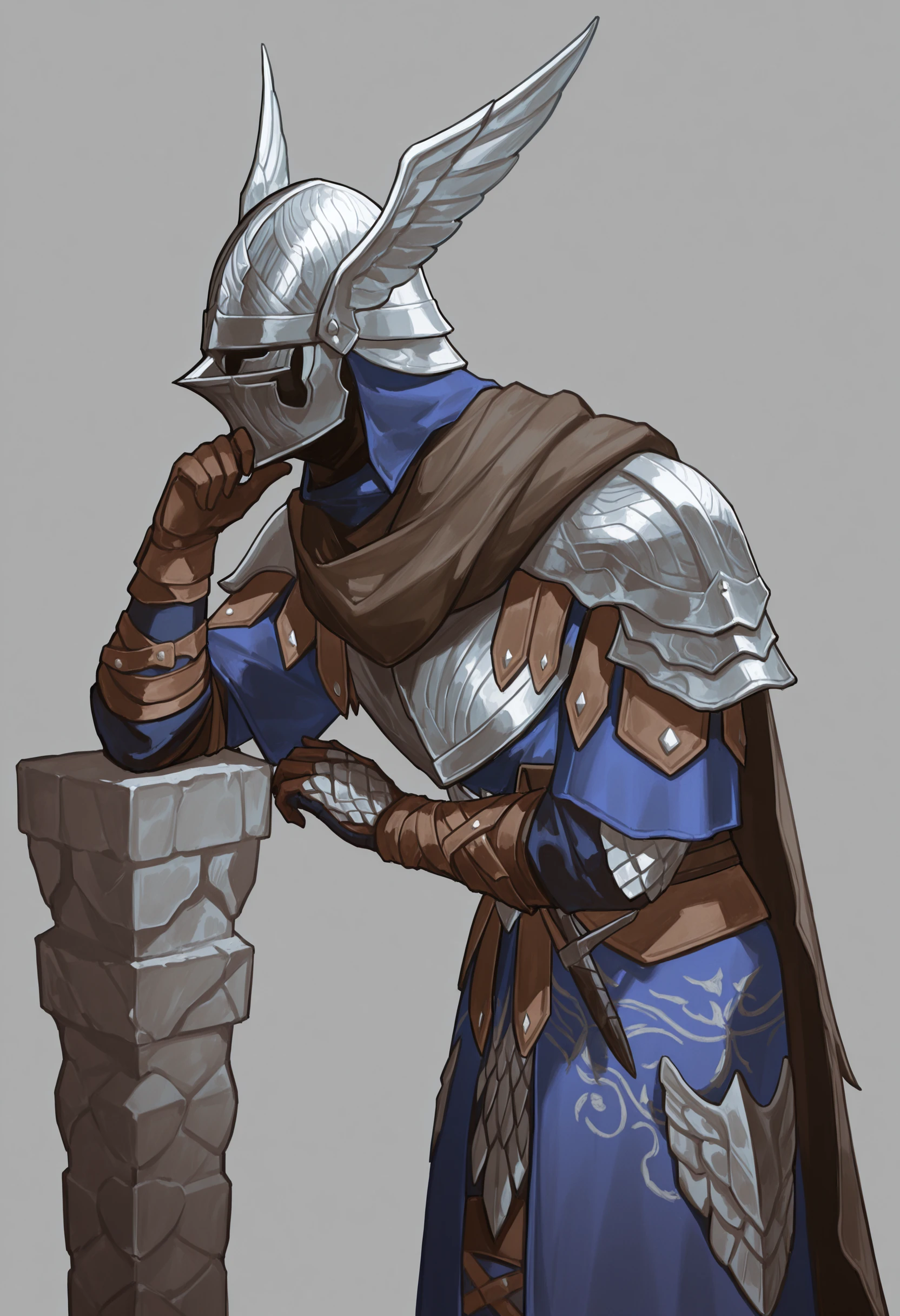 wld, winged helmet, helm, pauldrons, shoulder armor, armor, full armor, cape, gauntlets, brown belt
