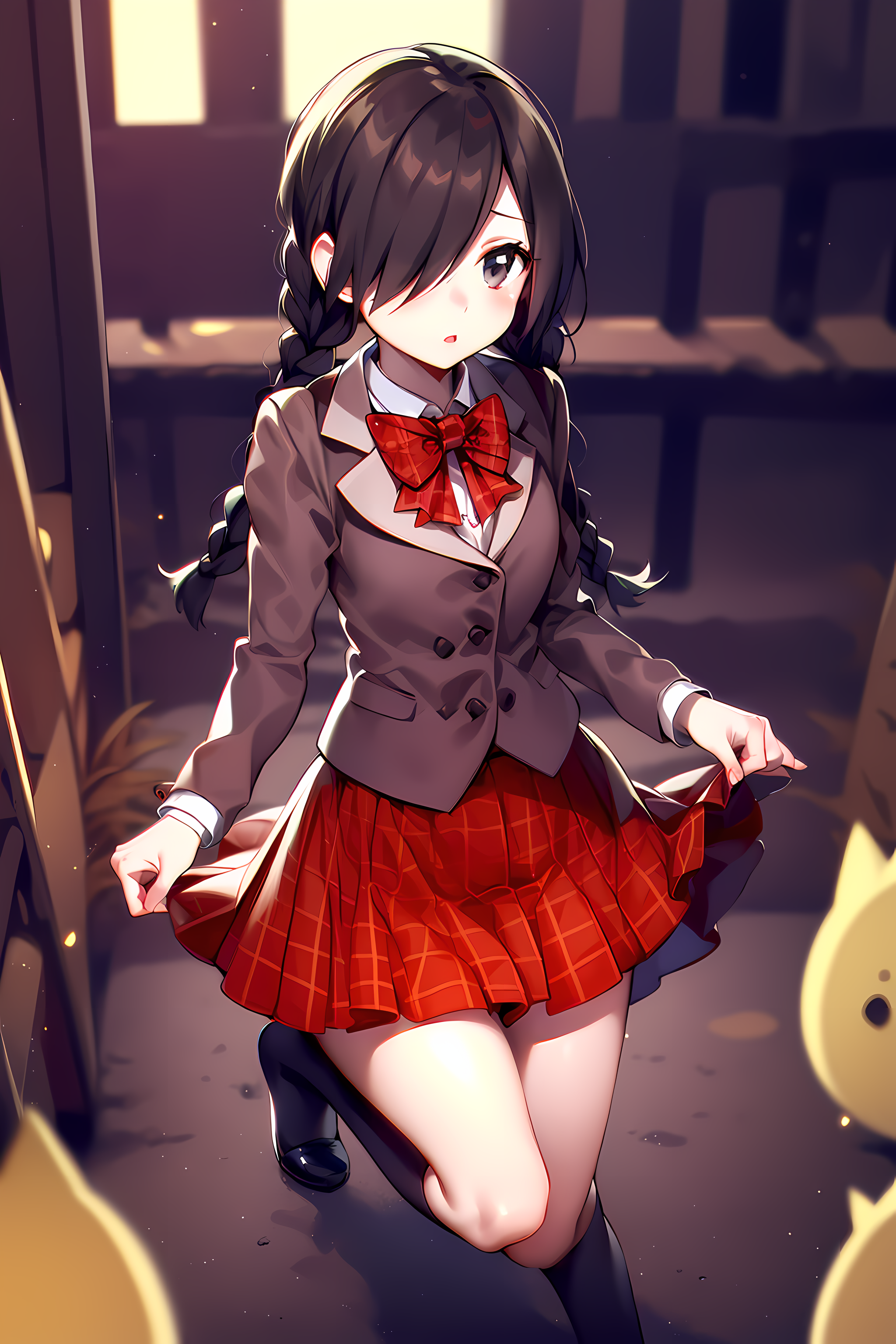 Prompt: Use at prompts: red skirt in case you don't see her with it.