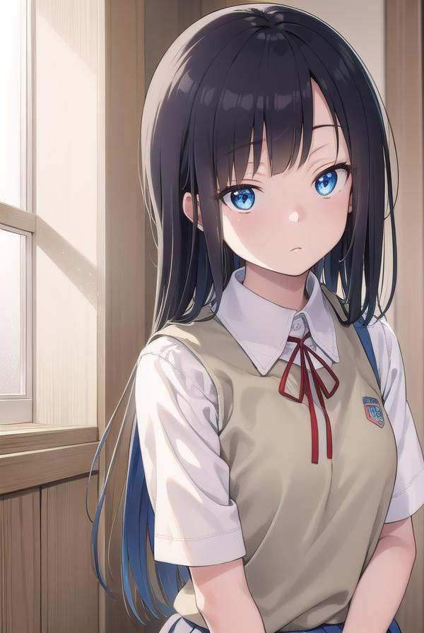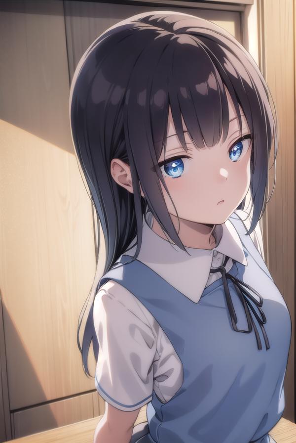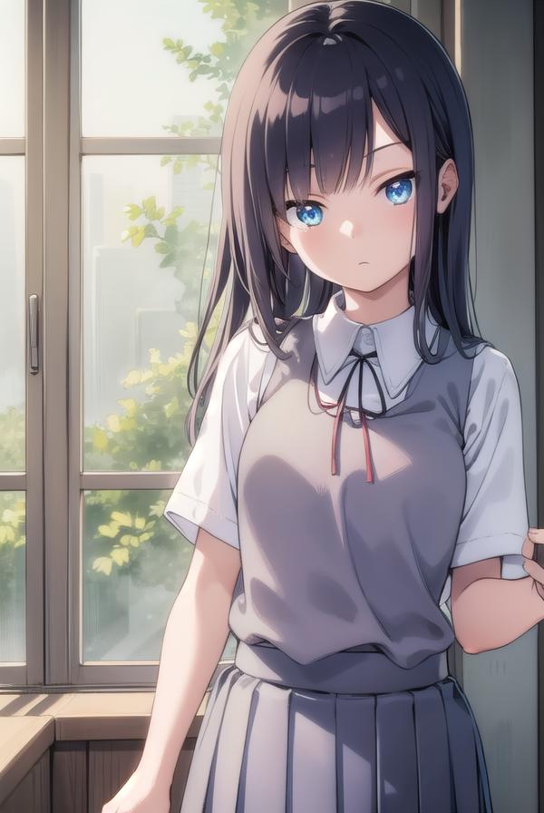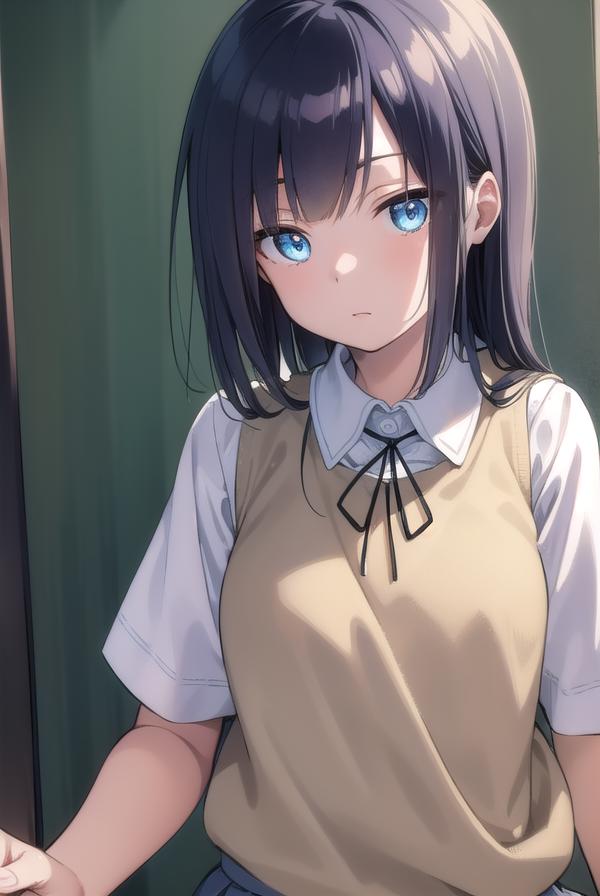 skirt, shirt, ribbon, school uniform, short sleeves, pleated skirt, vest, neck ribbon, sweater vest,
