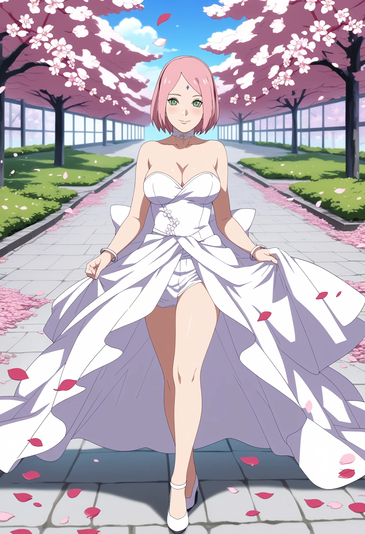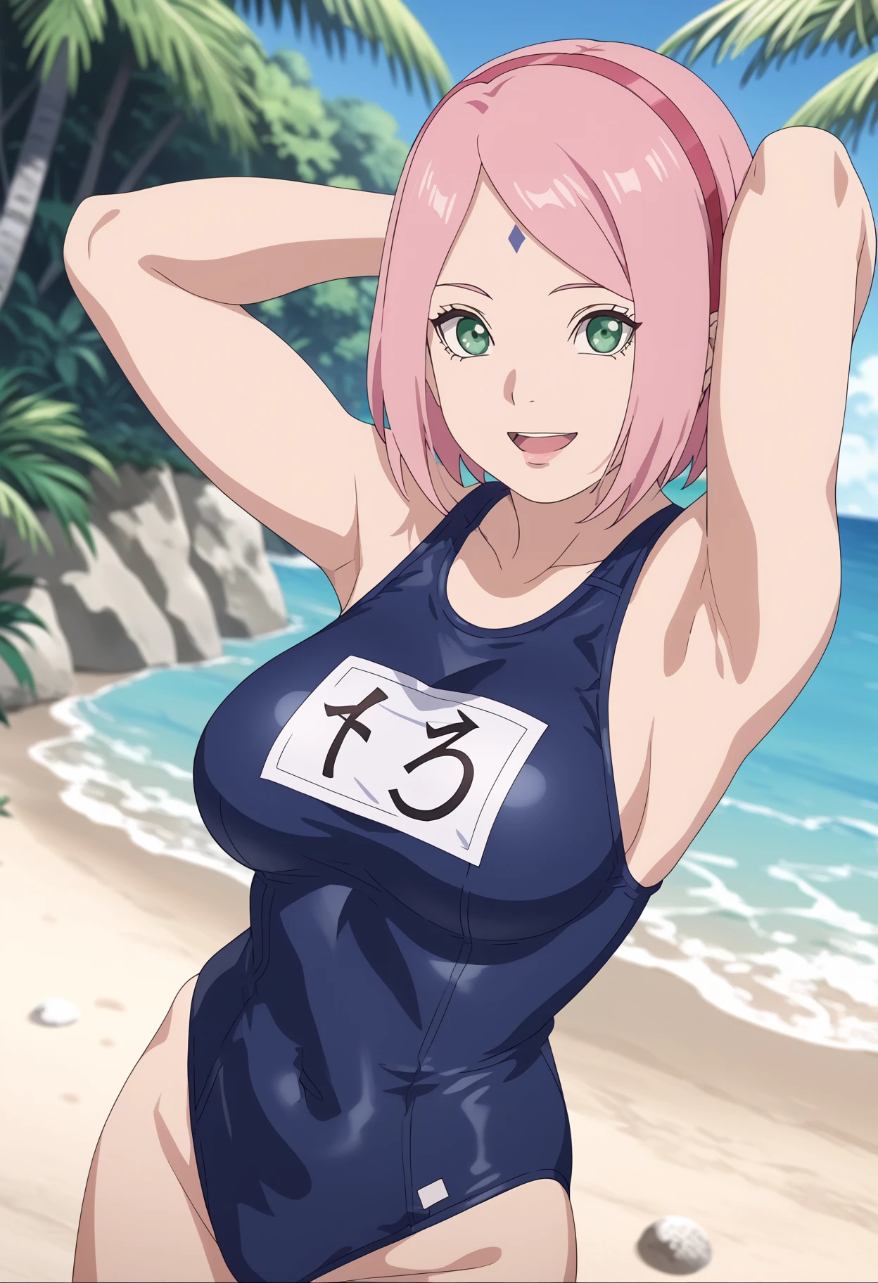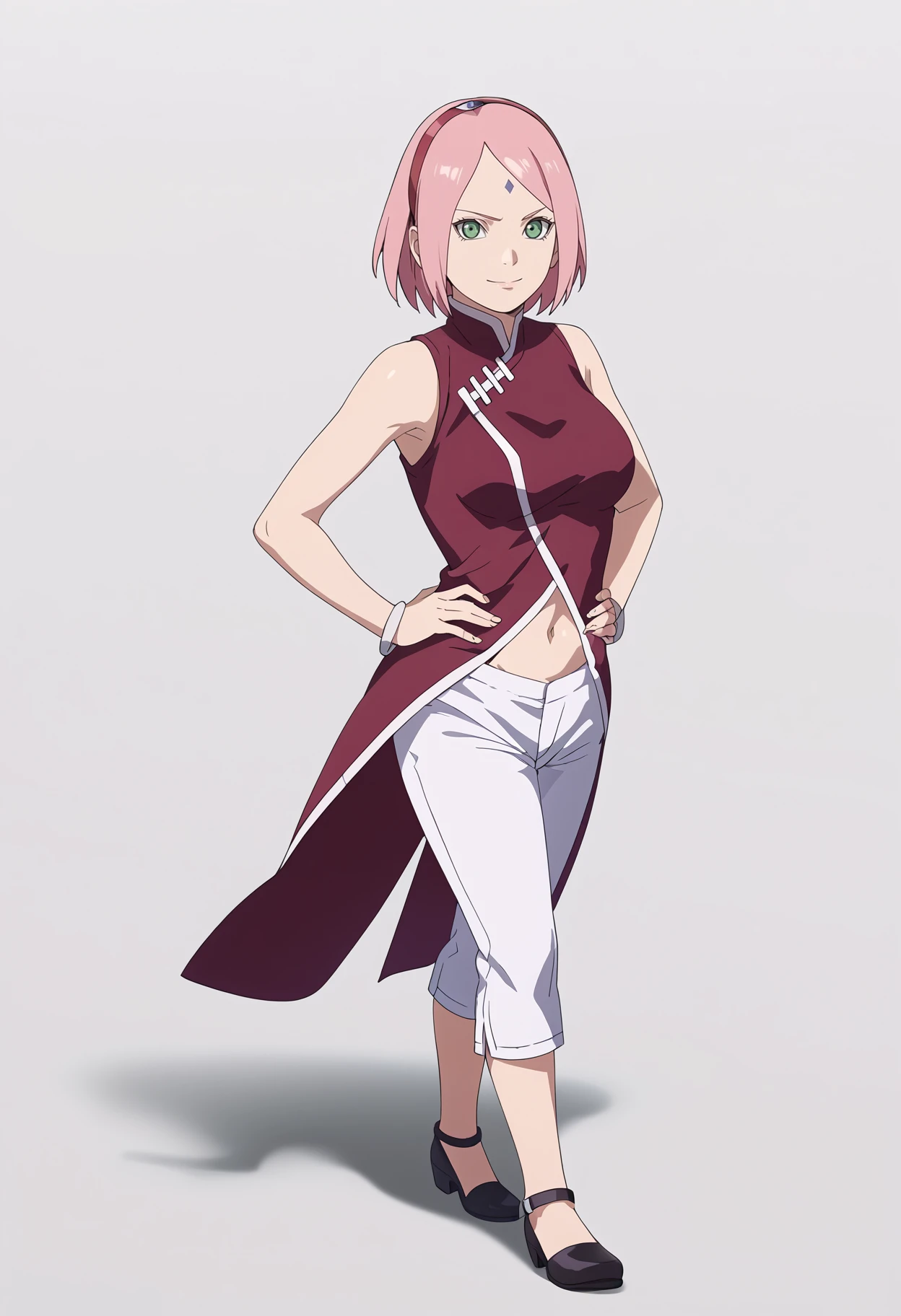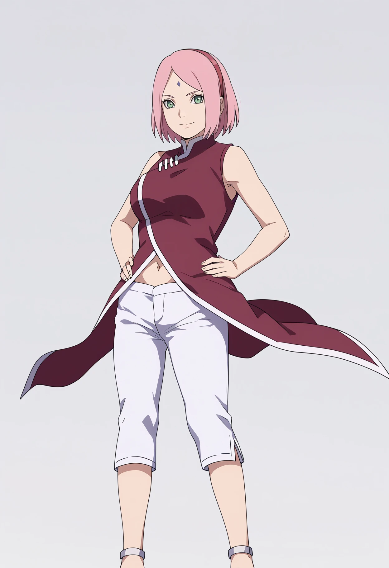 Basic prompts : 1girl, haruno sakura, pink hair, short hair, green eyes, forehead mark, hairband
