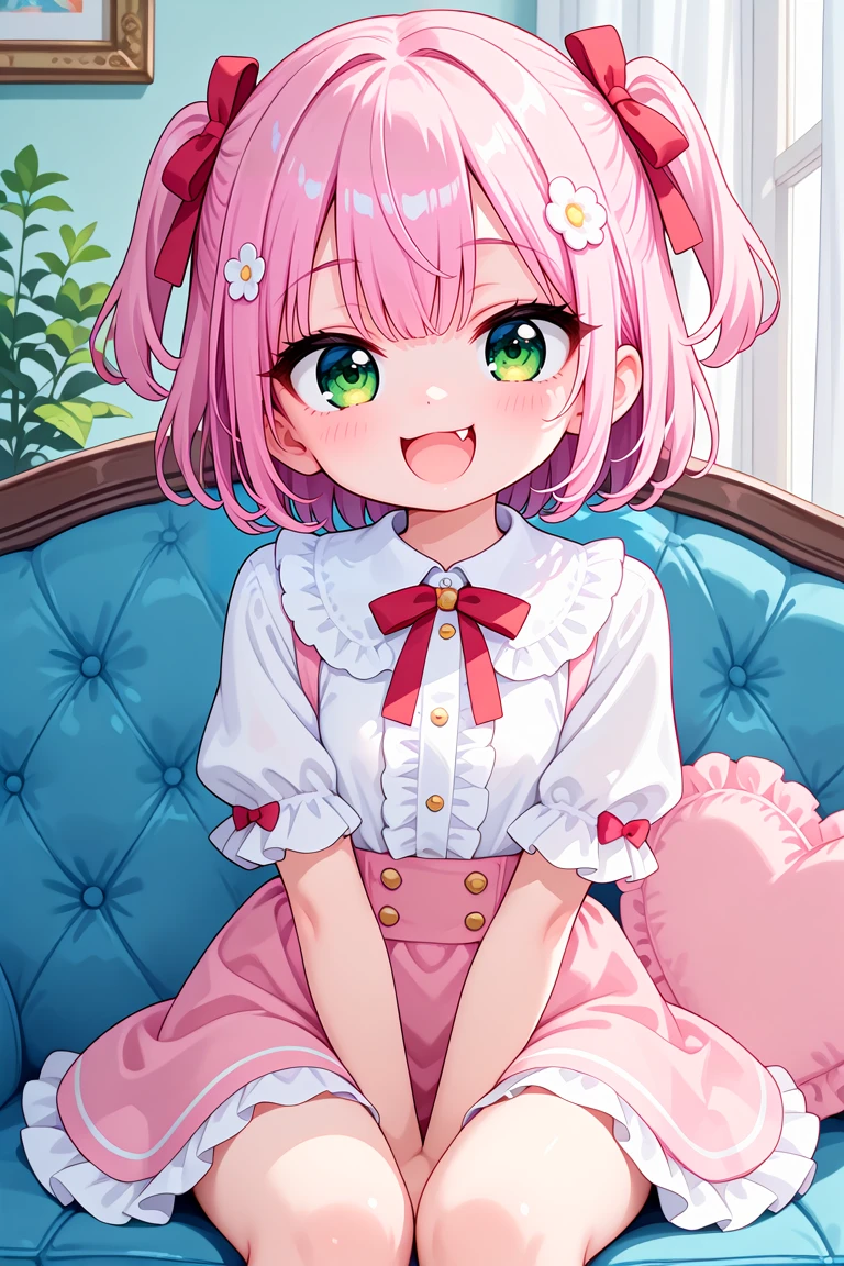 使用の際はopen mouthのプロンプトを使用してください。smugやsmirkingを追加すると効果が強まります。fangを付けると八重歯の表現が追加されますが、複数形のfangsにすると両側の2本が生えてしまいやすいので、1本だけ生やしたい場合は単数形で記述してください。