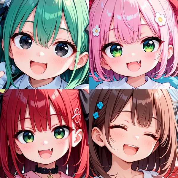 上辺がカーブして広めに開いた、にやけた感じの口を表現できます。smugなどプロンプトのみを使って出すよりも形状が安定します。