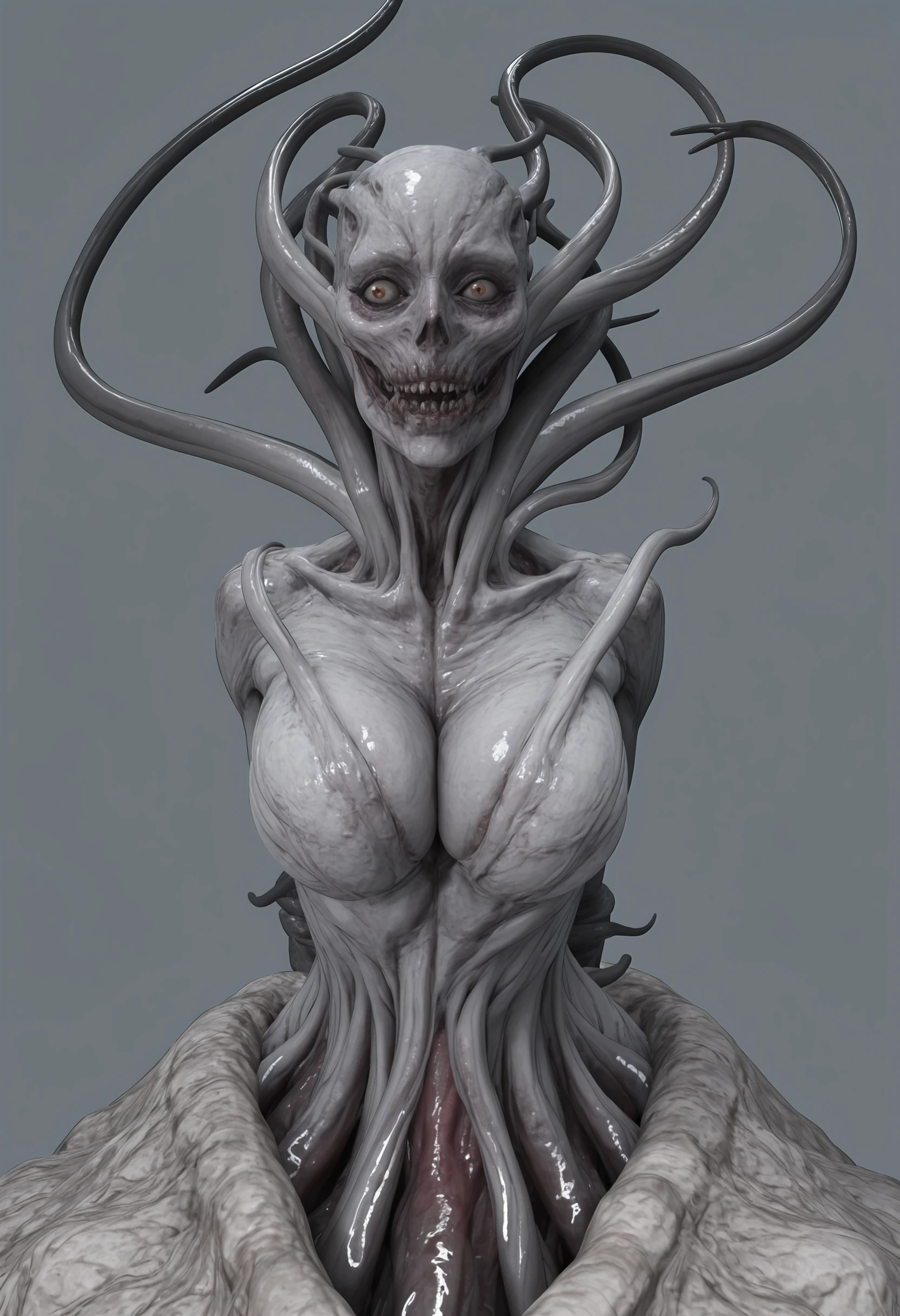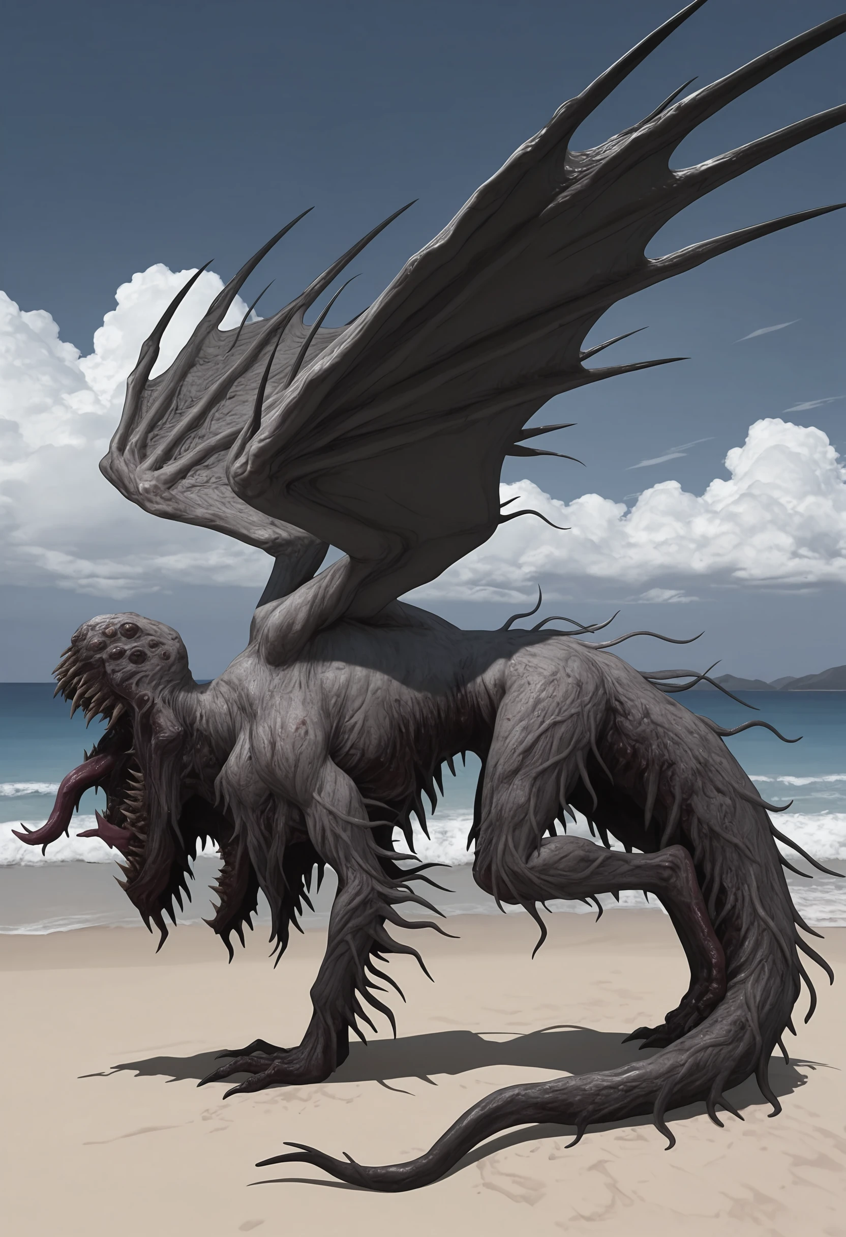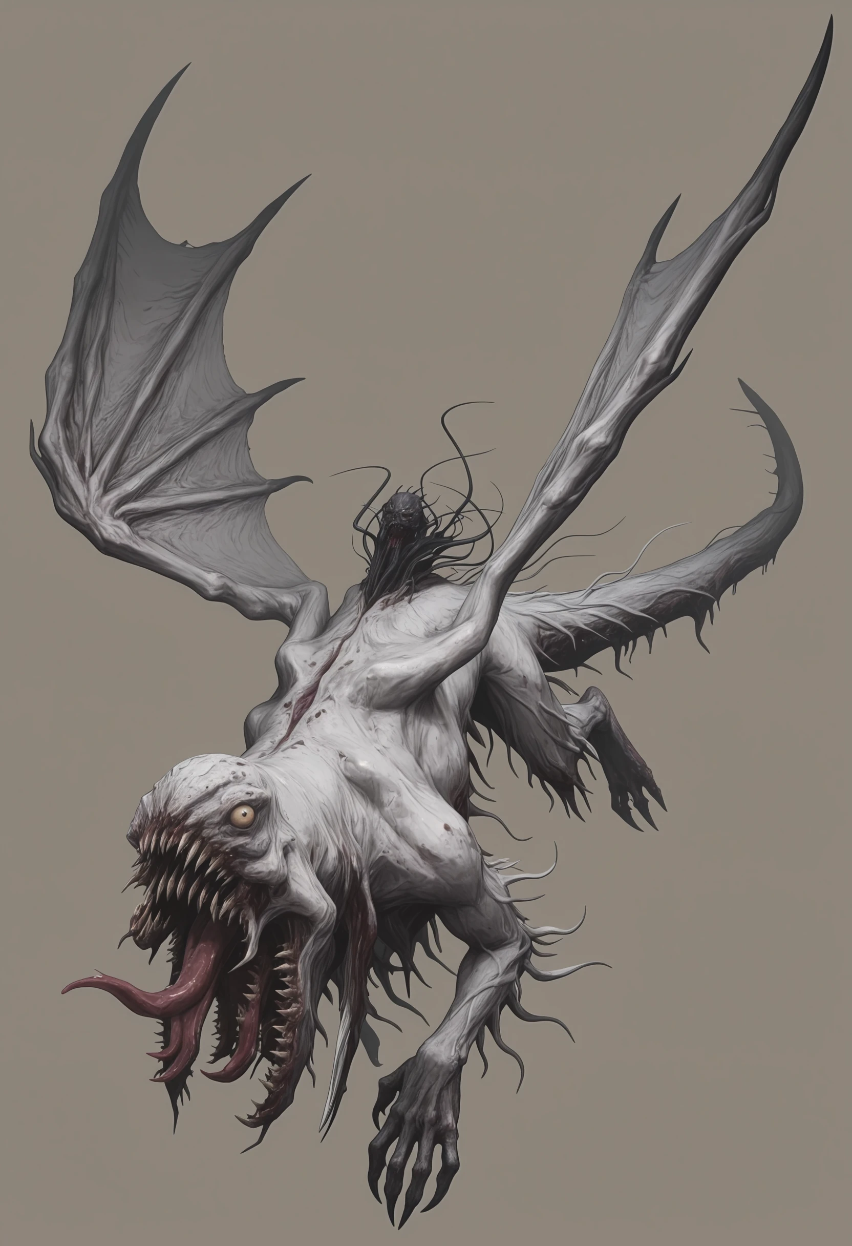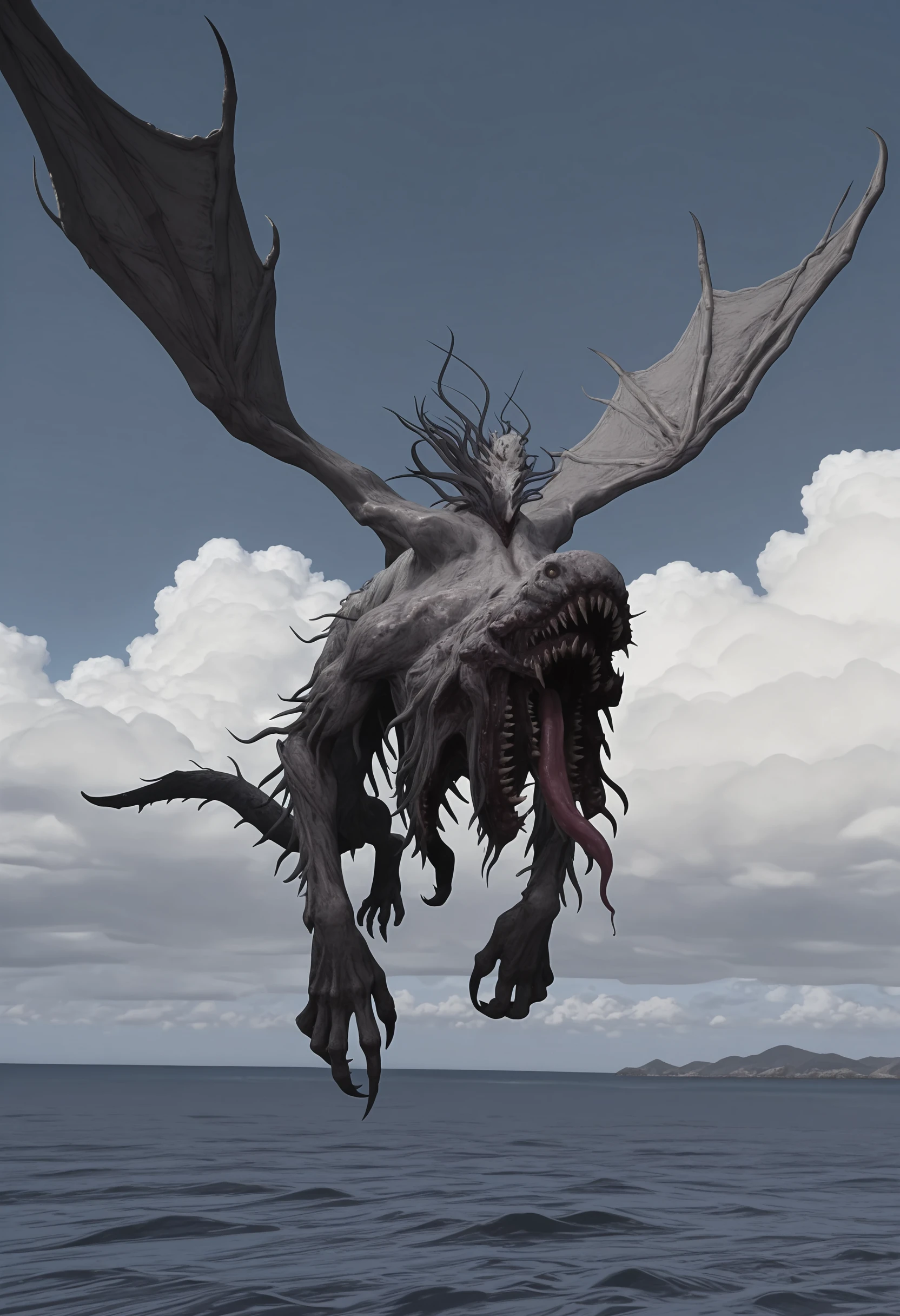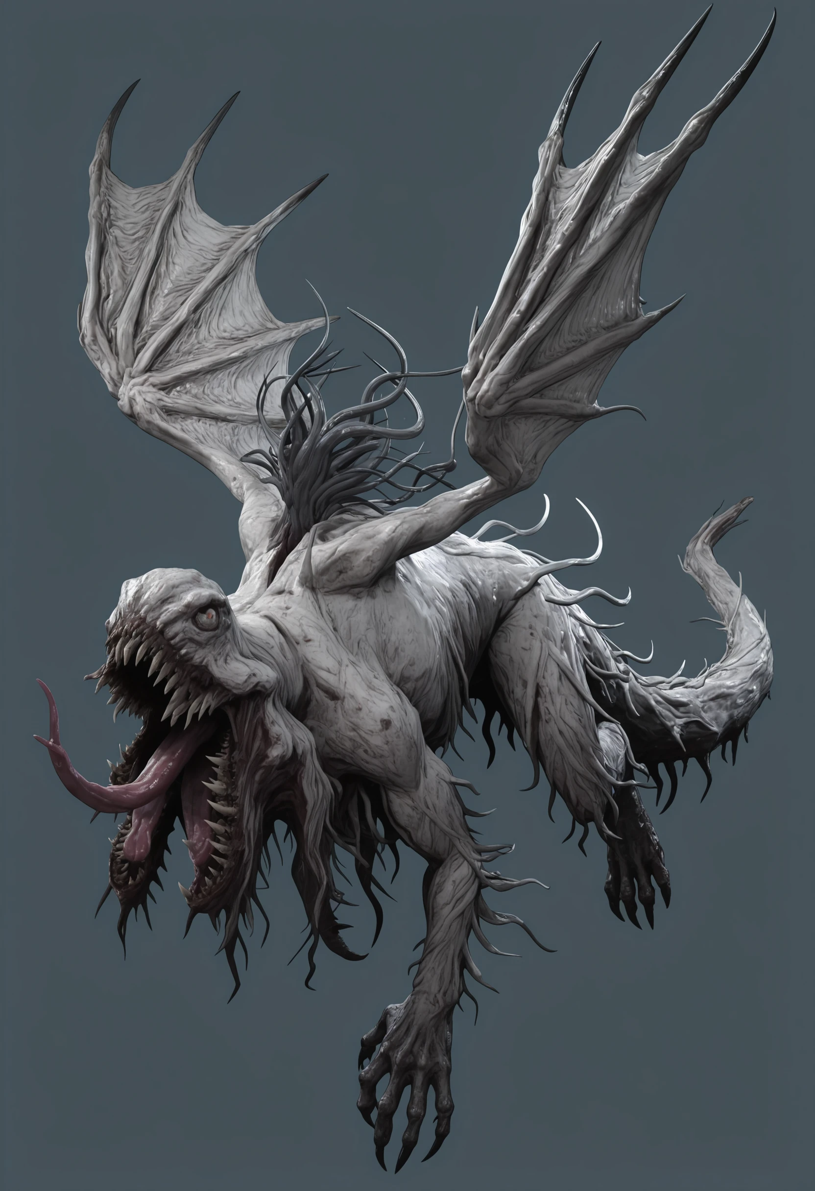 md7ilf, monster, tentacles, wings, claws, sharp teeth, full body, tail, tongue