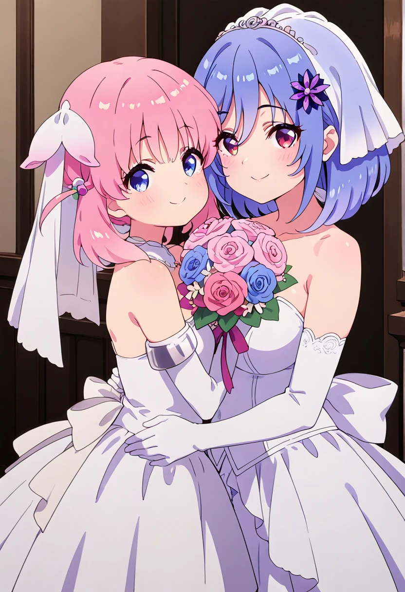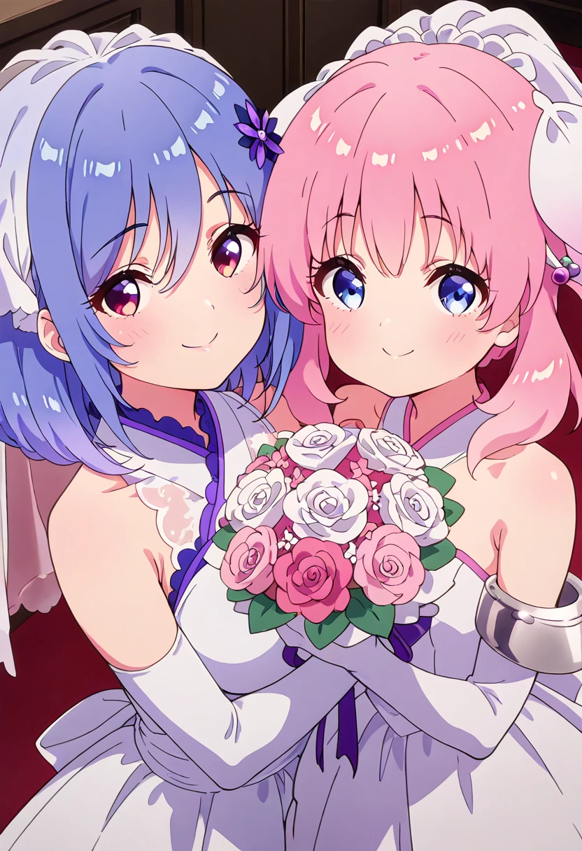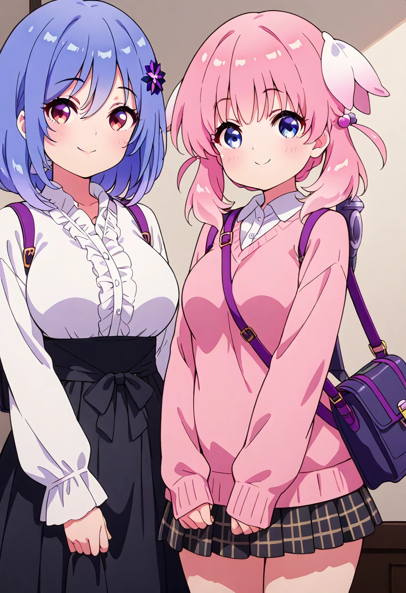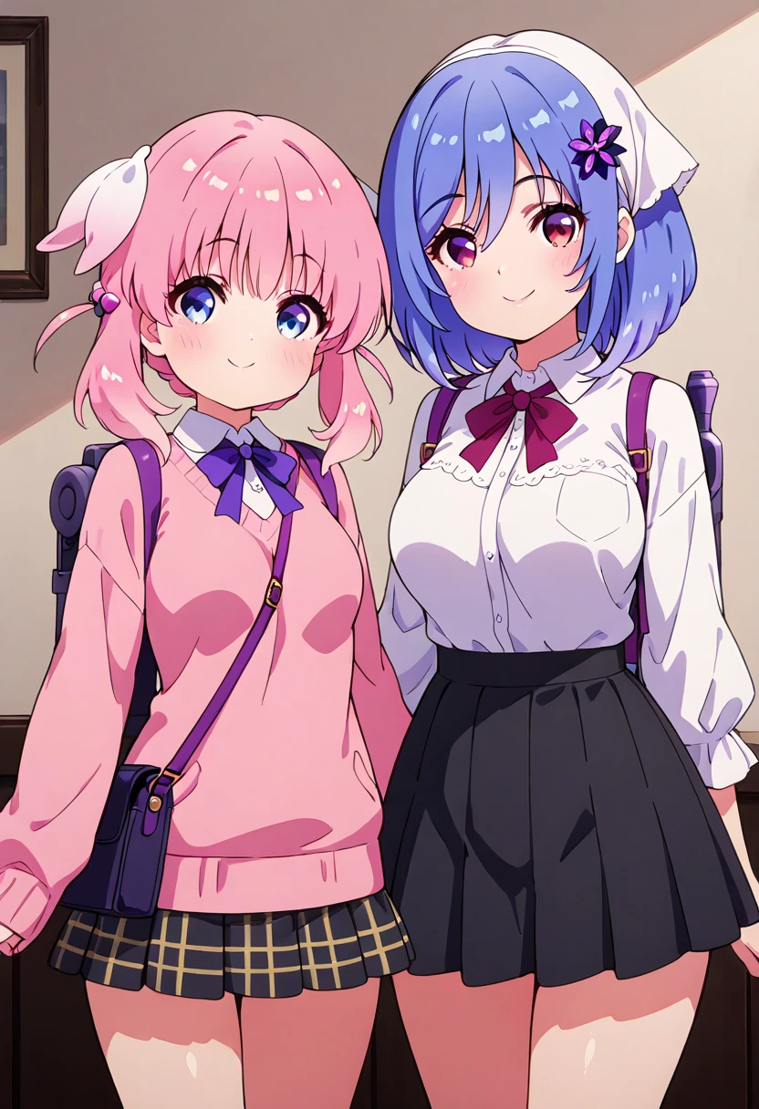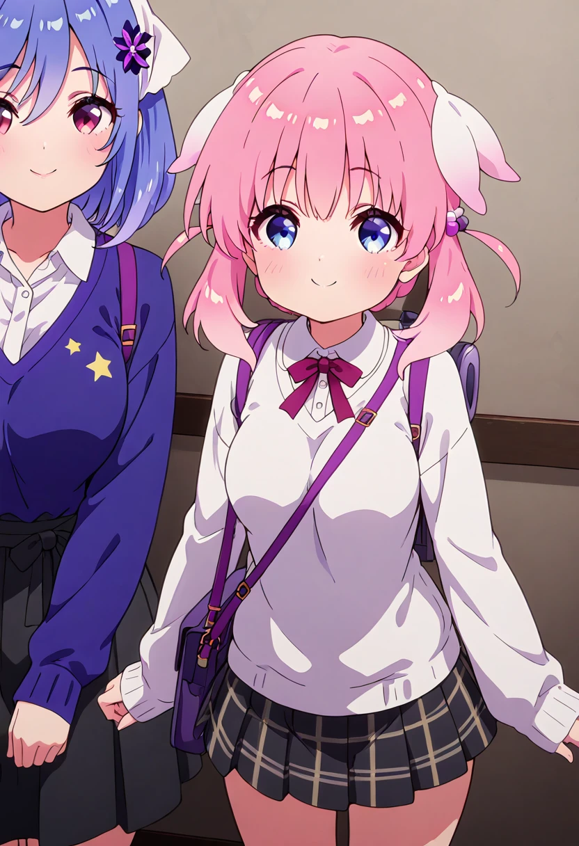 zzHaizakura, blue eyes, pink hair, twintails, medium hair, hair ornament, hair bobbles,