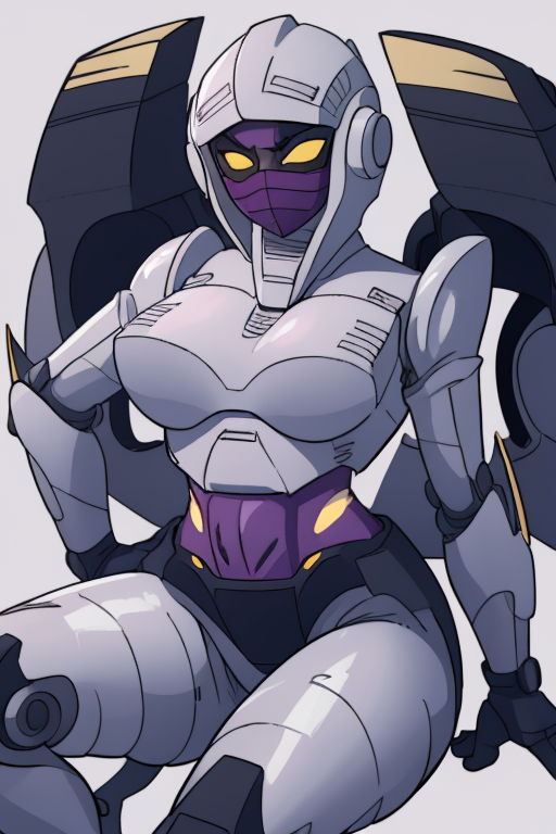 Nightbird. Works best at .8 weight. Activated using "nightbird". Add "robot, mecha, glowing eyes, no_humans, decepticon, face mask". Can do NSFW.
