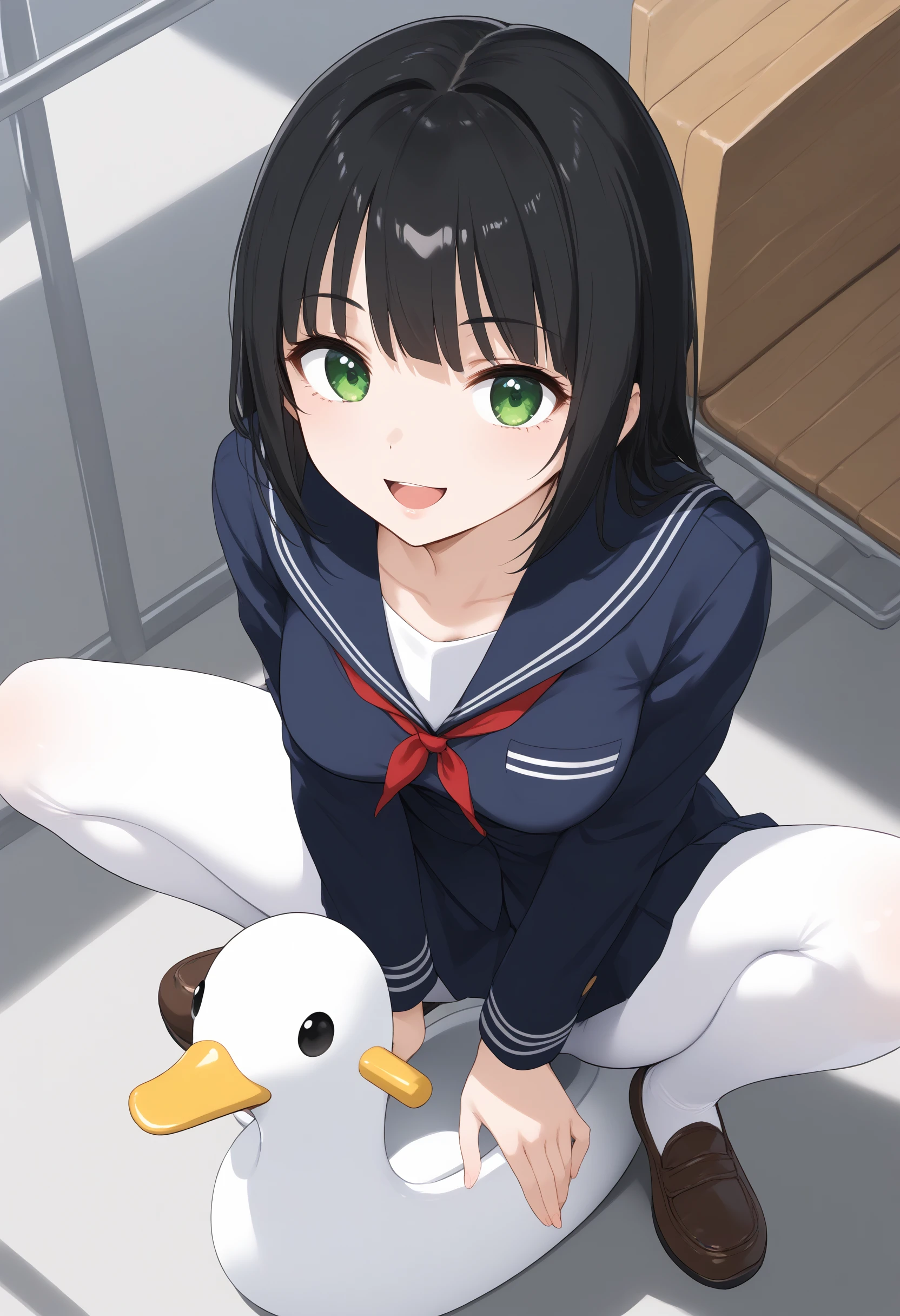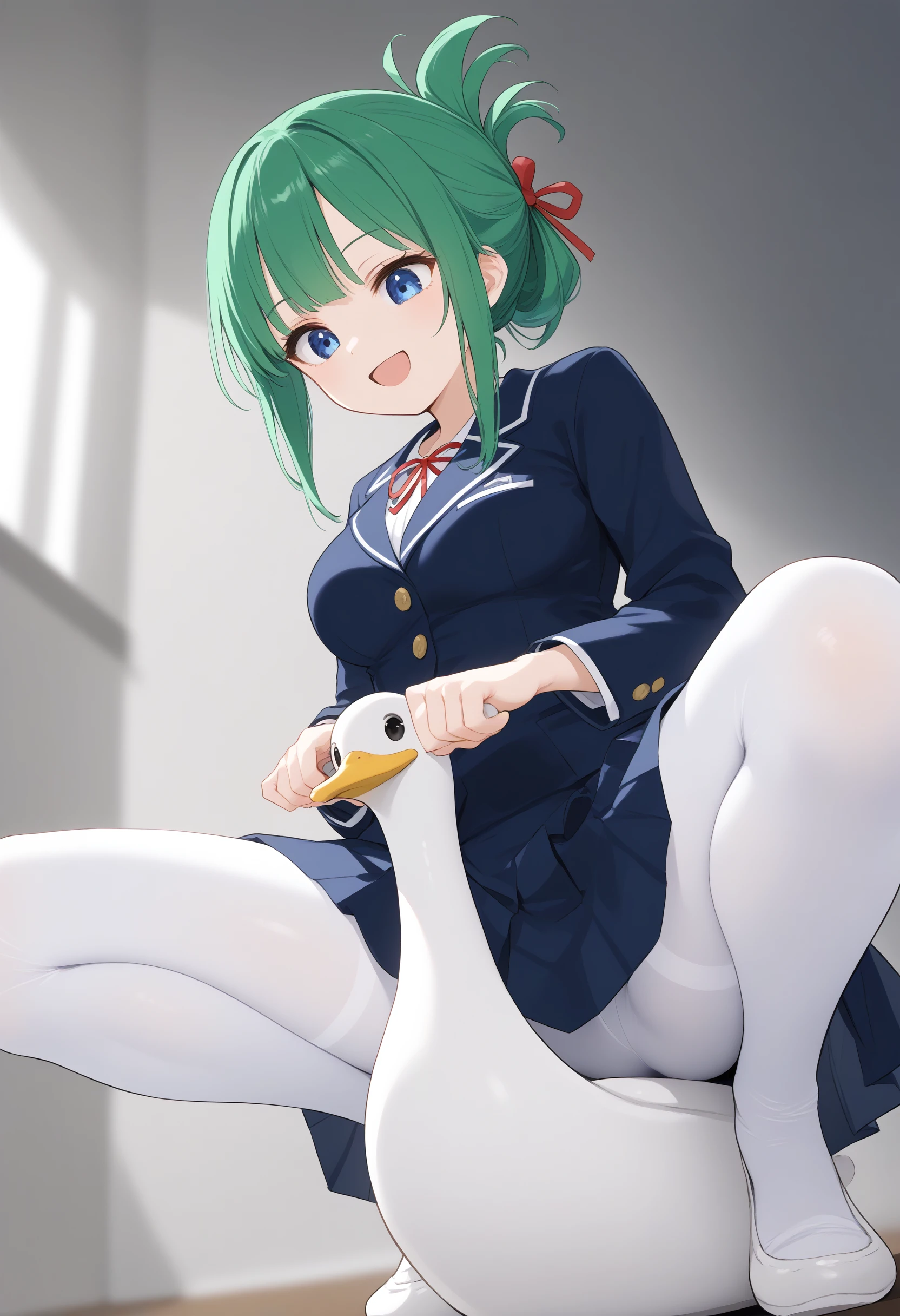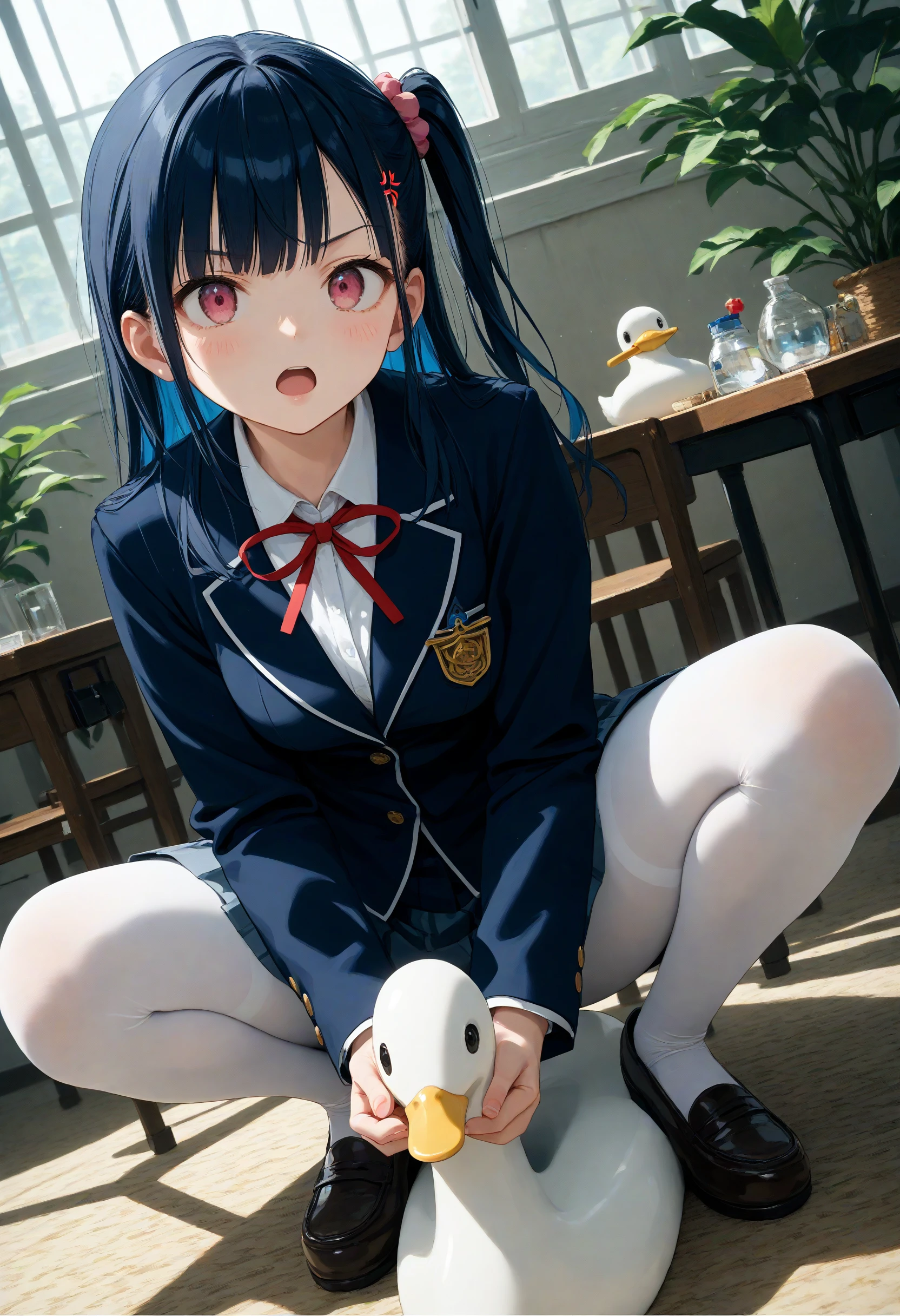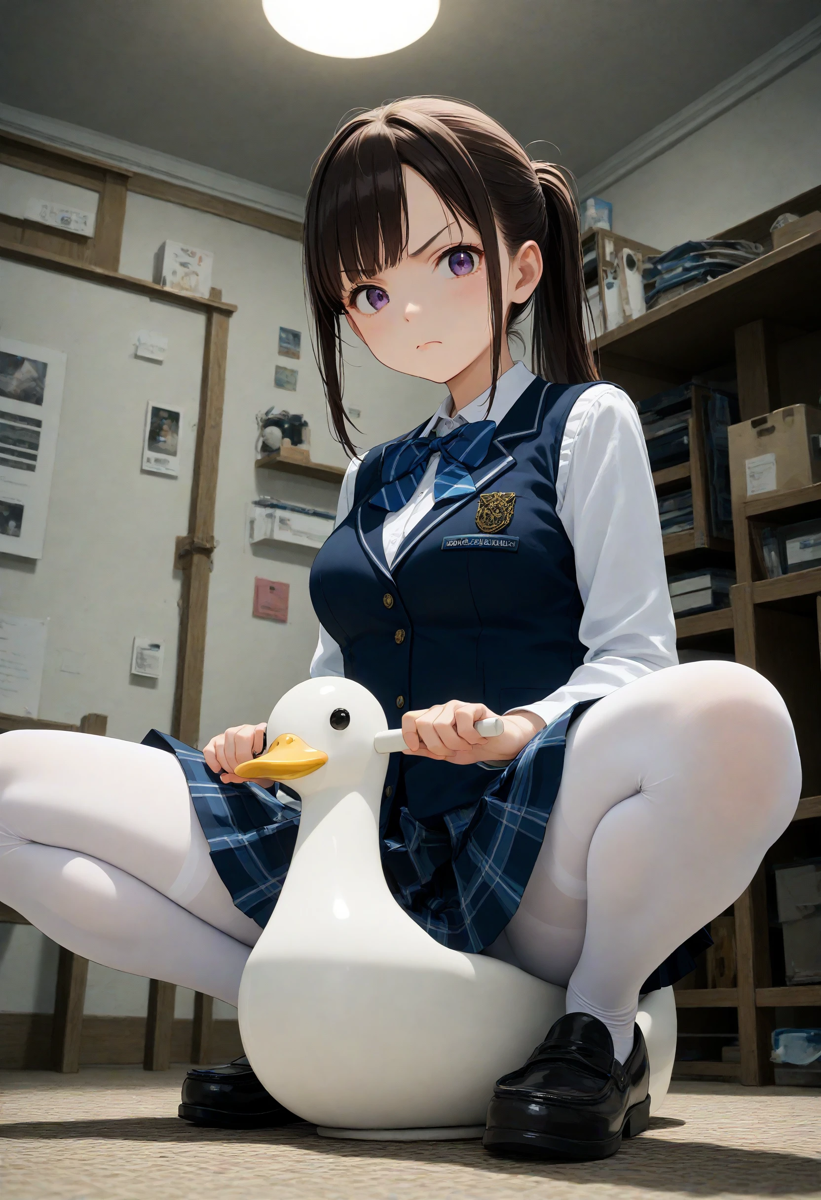 幼児のトイレトレーニングに使われるアヒル(白鳥)のおまるに跨がせるLoRAです。
