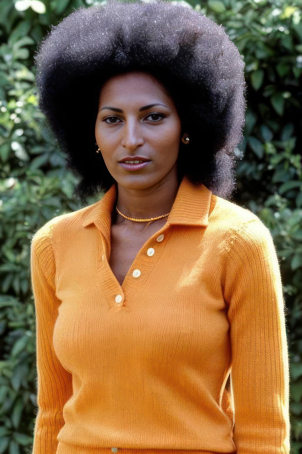 Shivam Dreambooth>LORA of American actress Pam Grier, using 92 ref images and 1400 (real) reg images, for 9,000 steps. Will default to stock-style poses, and frankly needs retraining soon (watch this space)>