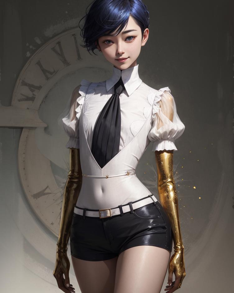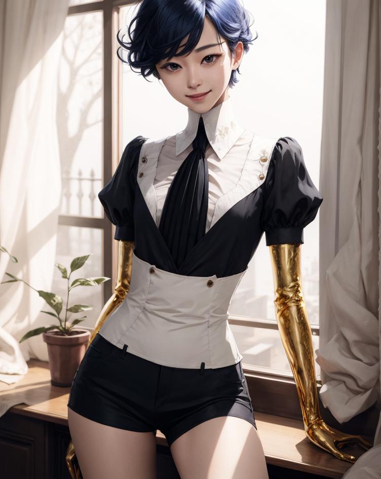 Default Outfit: gem uniform, necktie, puffy short sleeves, shorts