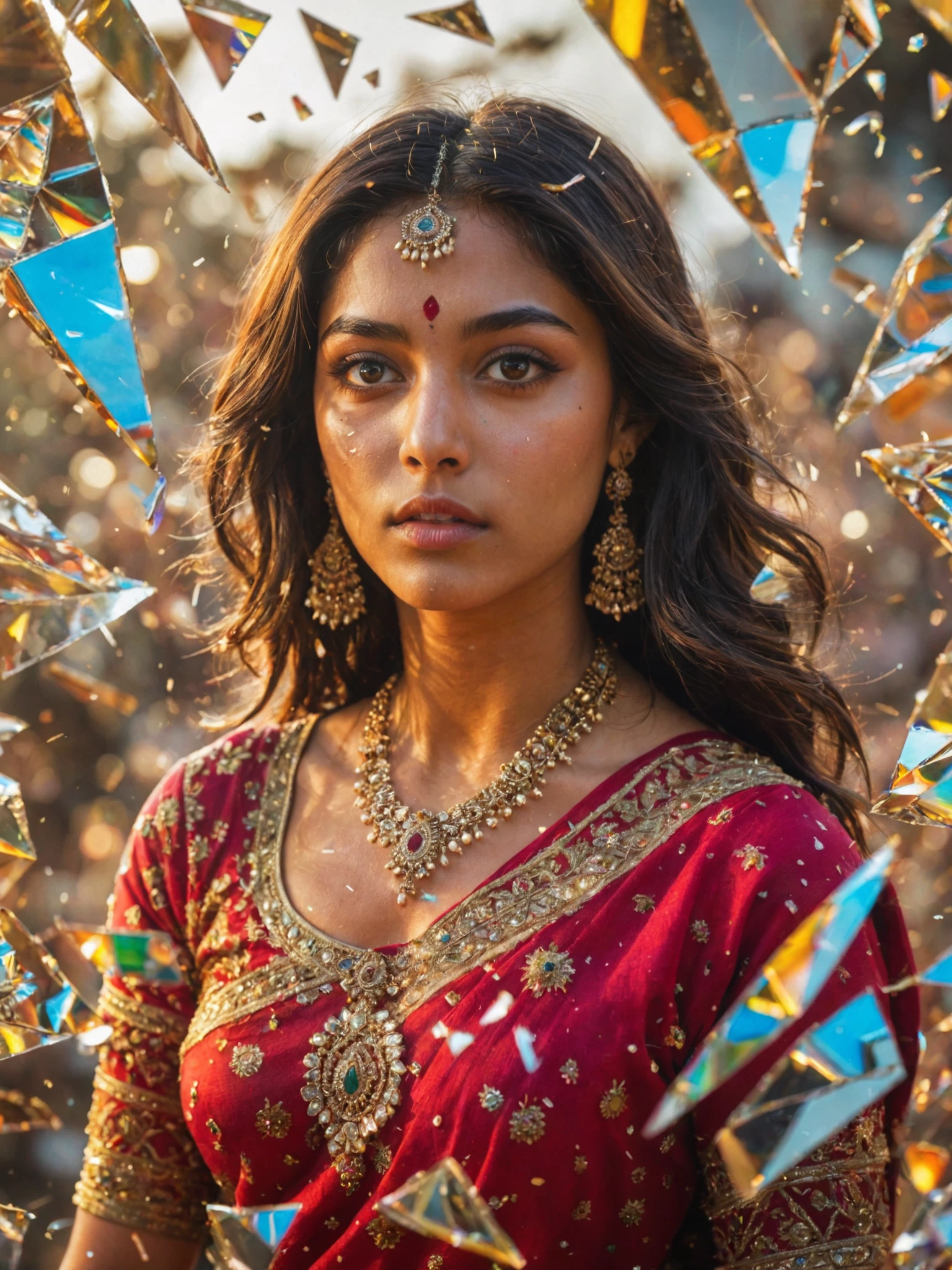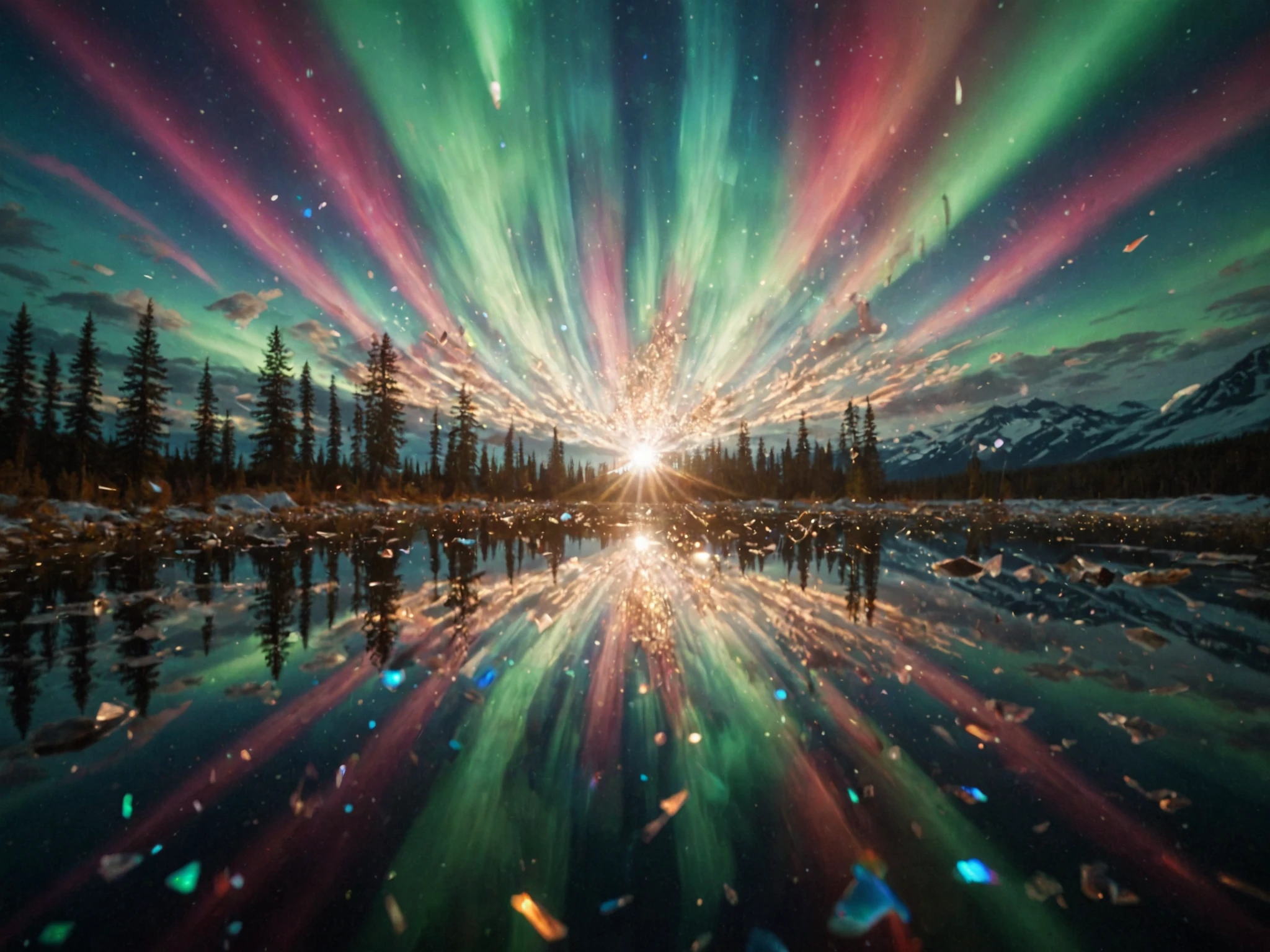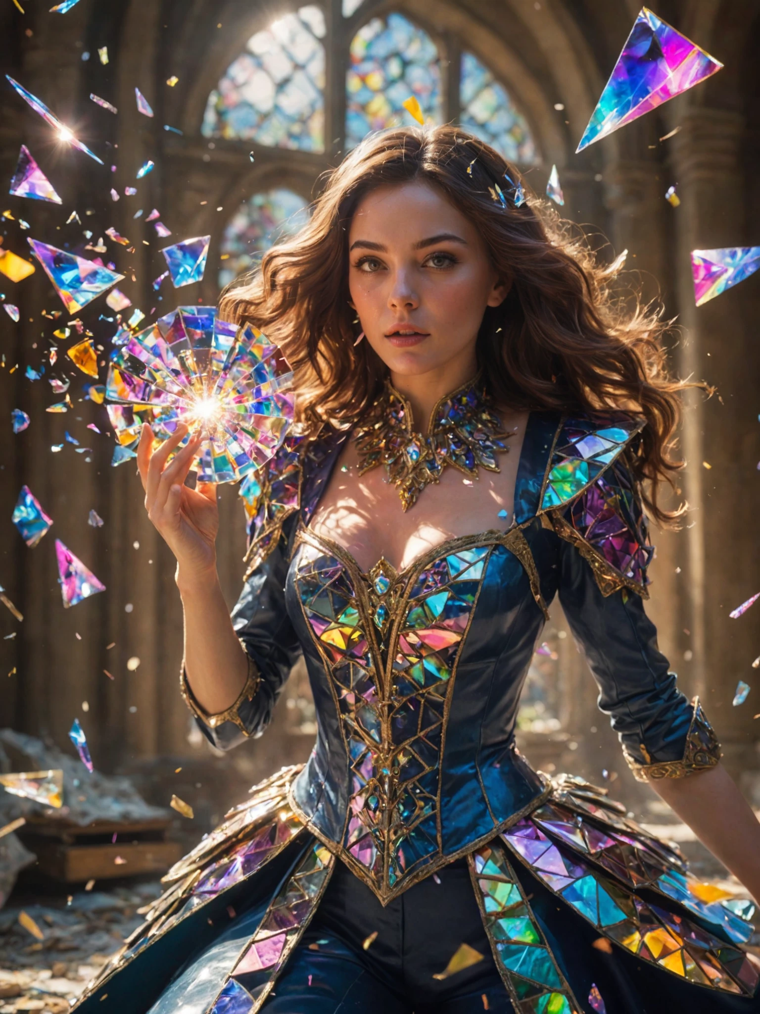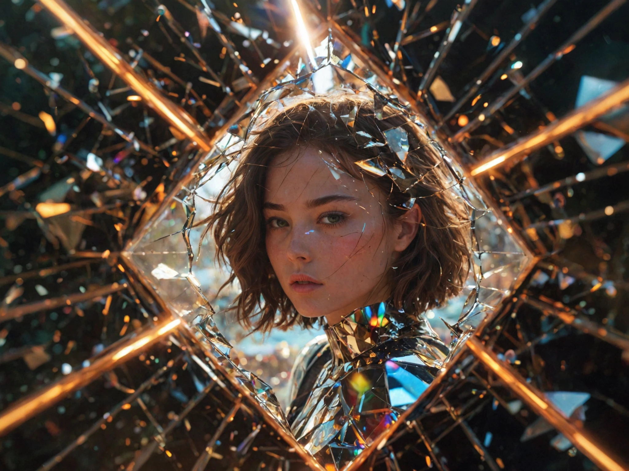 This LoRA adds kaleidoscopic lighting reflections and shattered mirror pieces to create unique stunning visuals and lighting effects.
