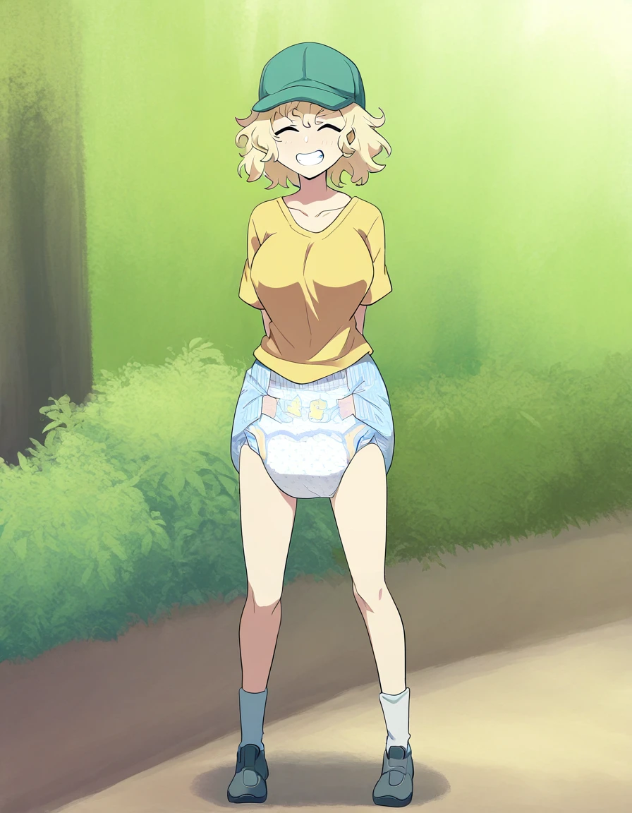'diaper' was the only relevant caption used in training. '(diaper:1.2)' seems to provide enough weight anywhere in the prompt.