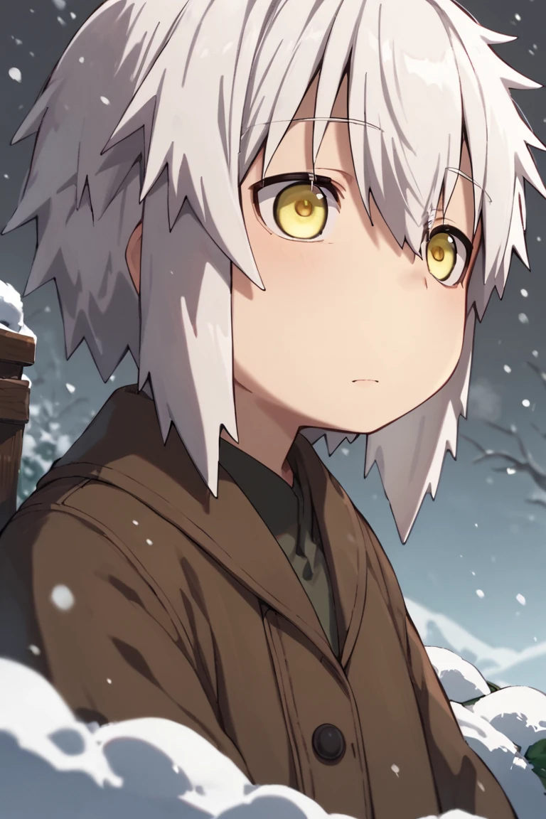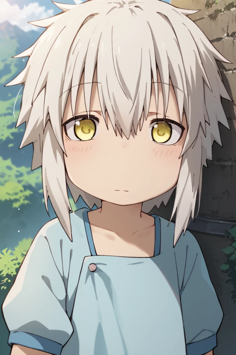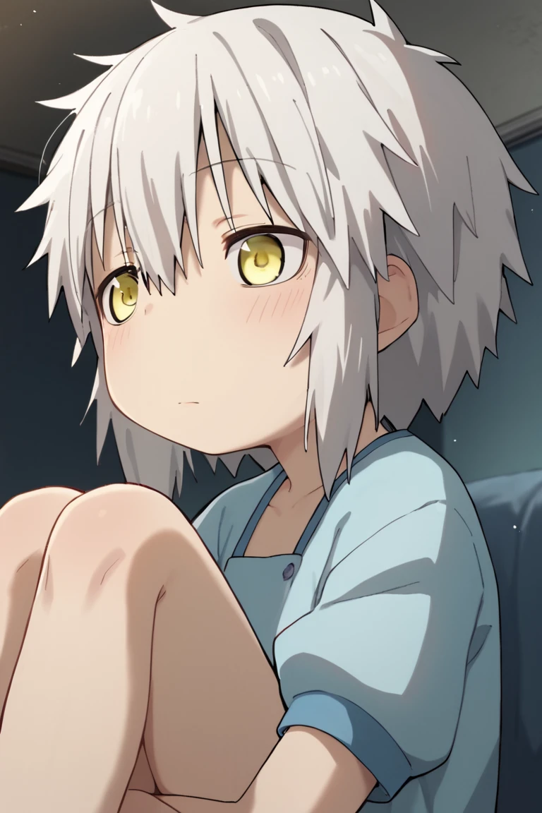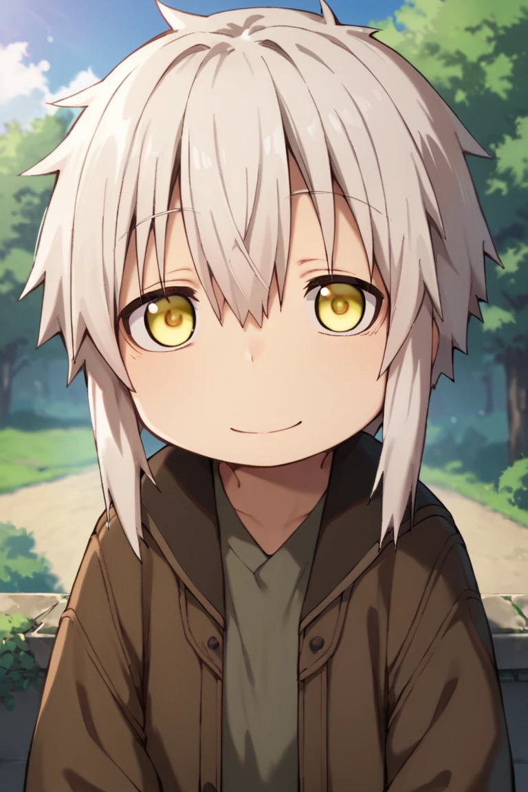 human nanachi,white hair,yellow eyes,