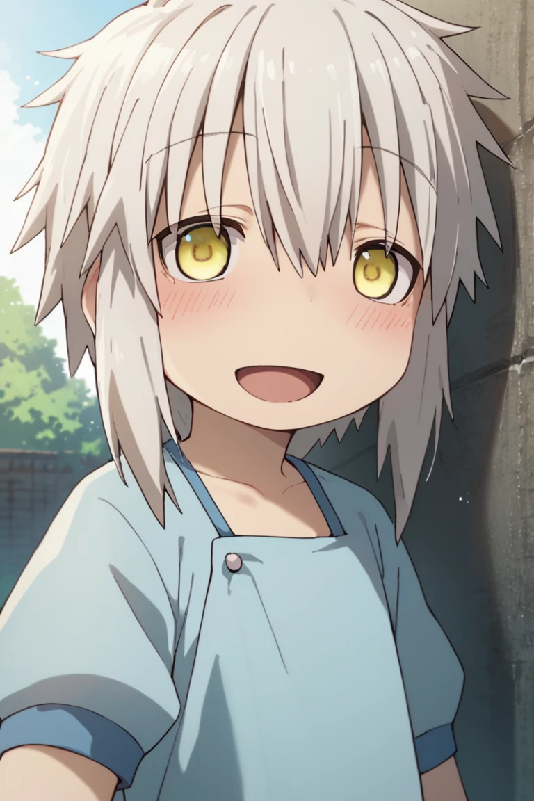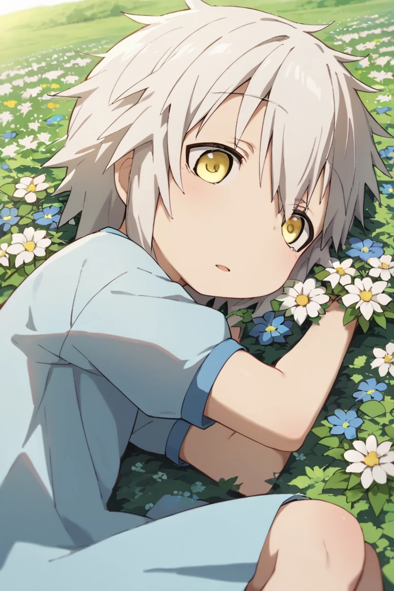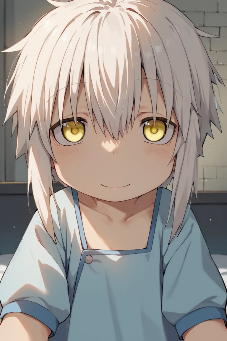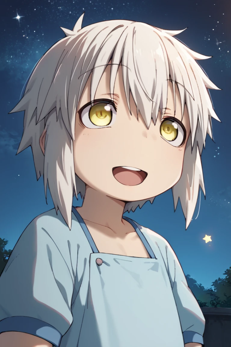 human nanachi,white hair,yellow eyes,