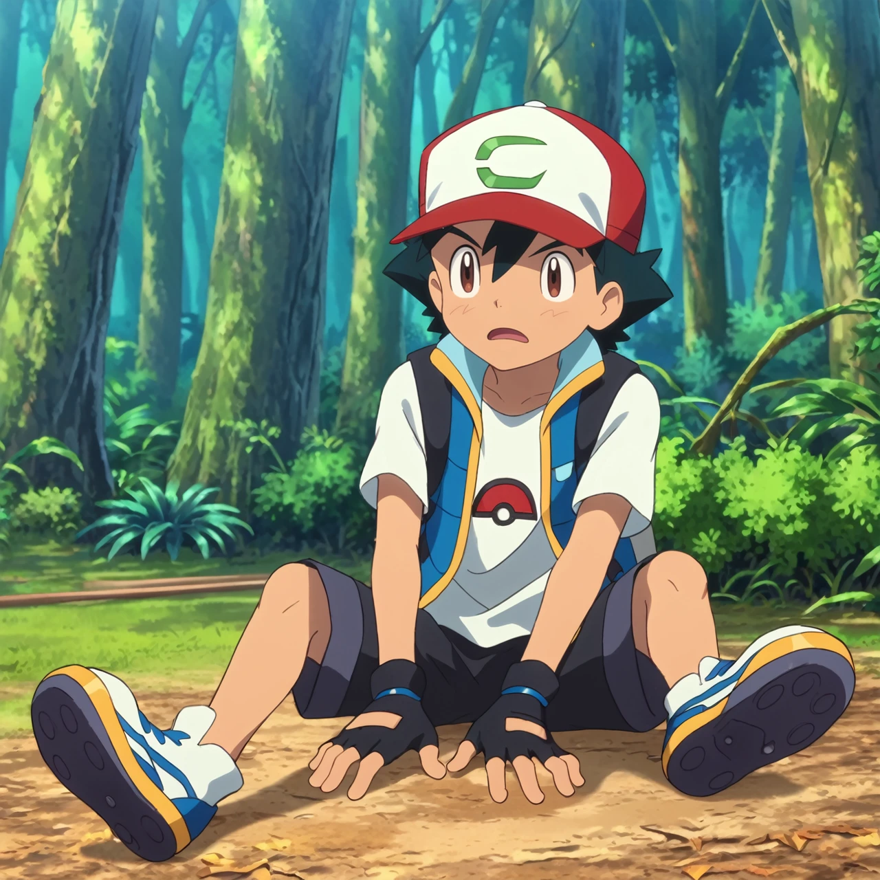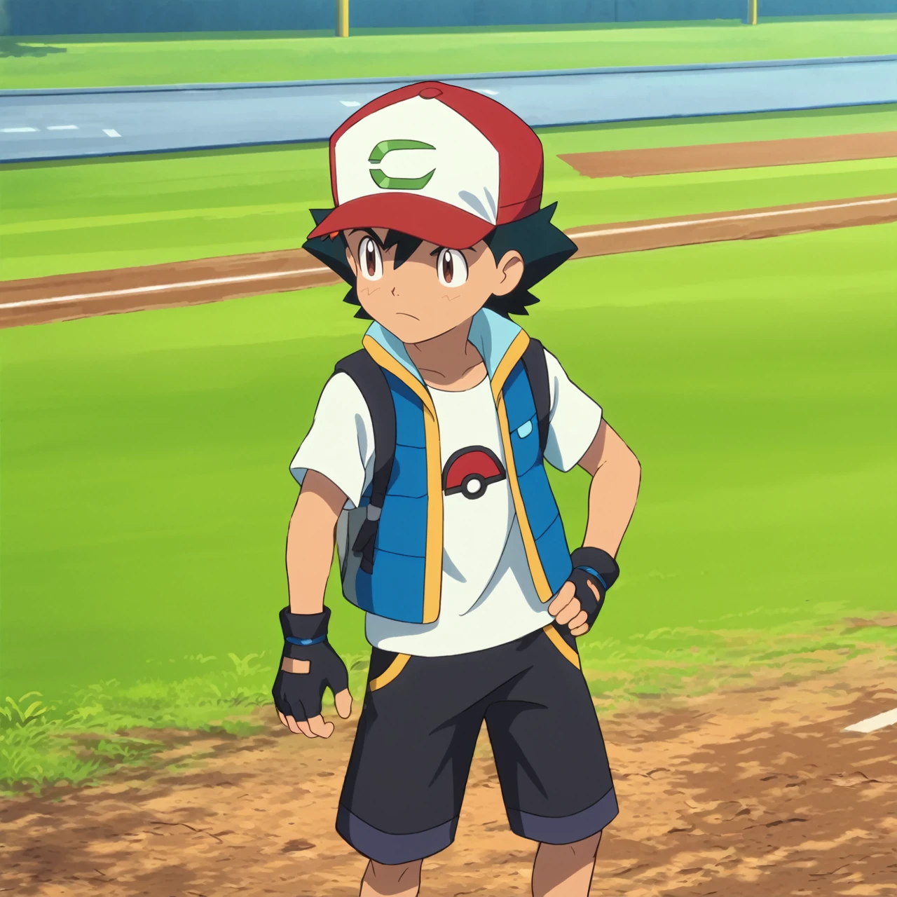 PokemonMovieSatoshi,hat,baseball cap,black hair,brown eyes,spiked hair