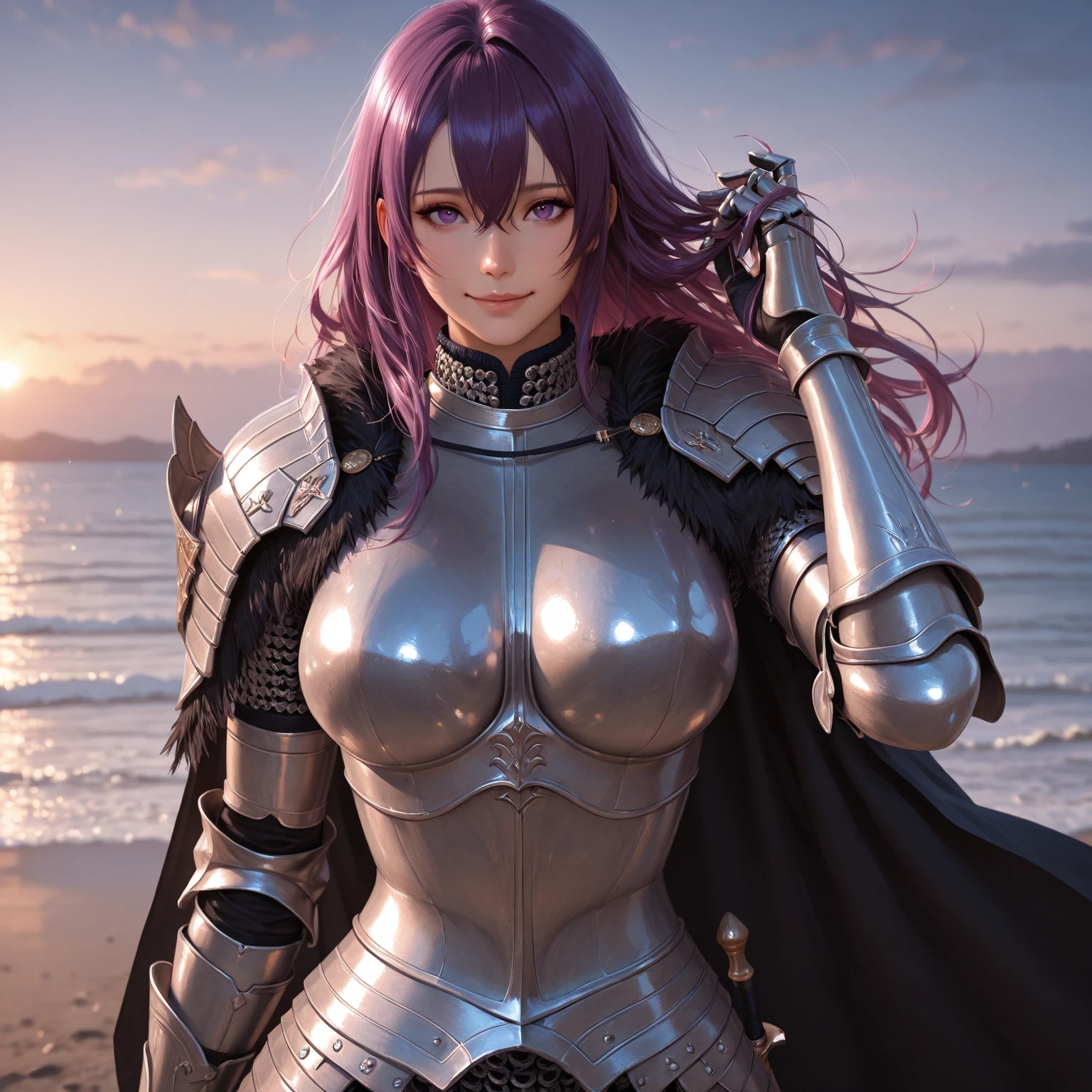 Outfit 1 (armor) prompts: armor, shoulder armor, gauntlets, breastplate, knight, full armor, chainmail, plate armor, boobplate, black cloak
