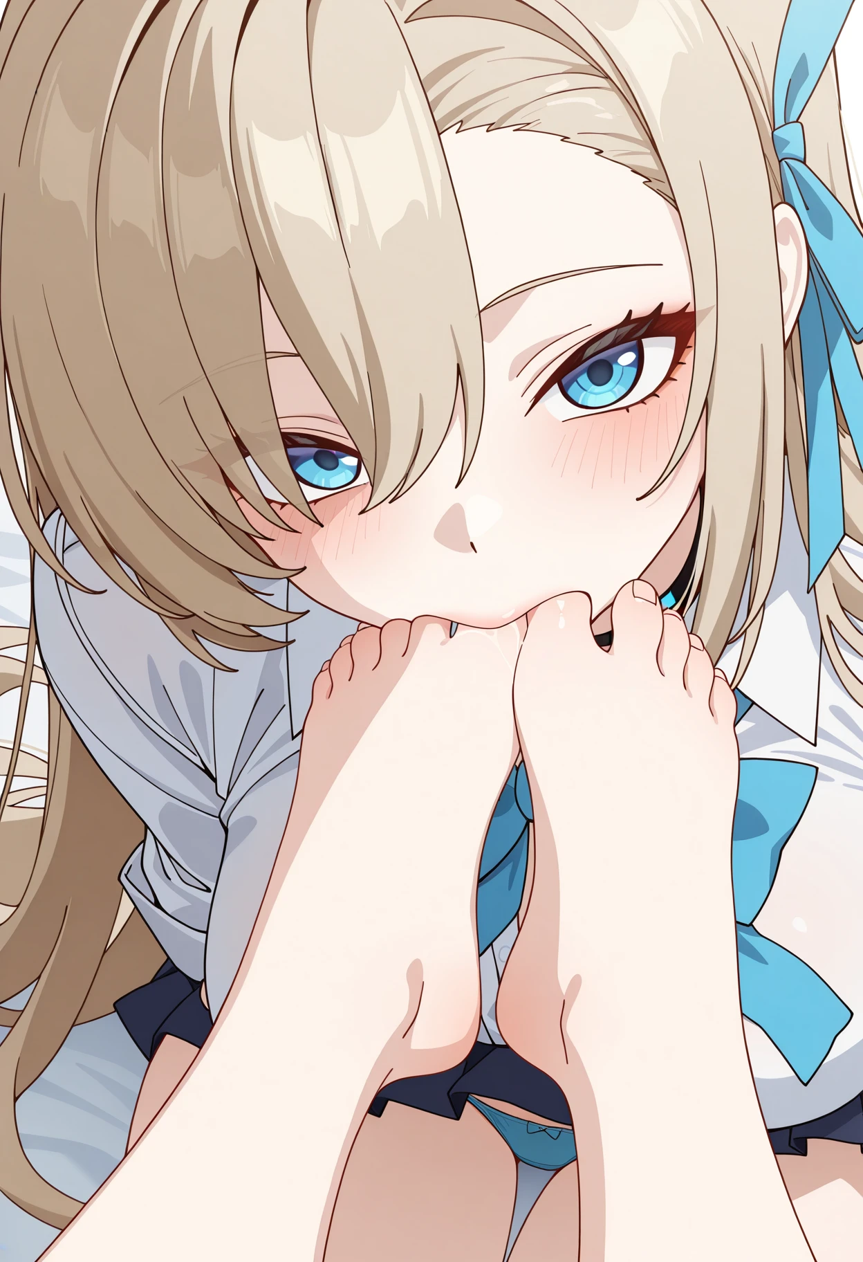 shitoesuck, toe sucking, foot worship, licking foot, looking at viewer, blush, spread legs, feet, toes, soles, no shoes,