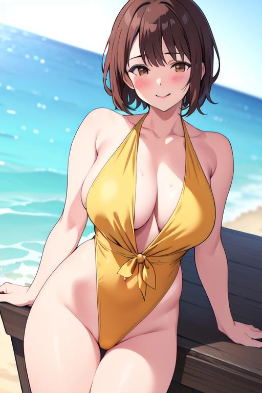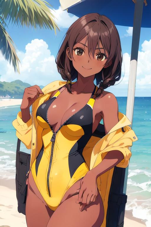 This model was intended to produce Kochiya Sanae (Touhou) in white plunging swimsuit with blue sash. You can change swimsuit colors, with/without sash, or even produce zip-front swimsuit by prompting. Thanks to all artists who drew Sanae and other girls for me on Skeb (art commission website).