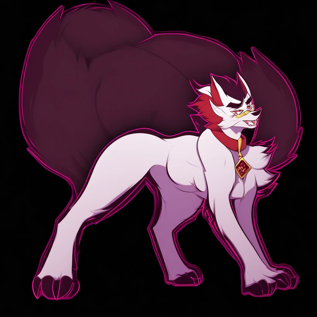 Anthro and feral tags hopefully differentiate body, and short tail and multiple tails hopefully differentiate dog and kitsune form.