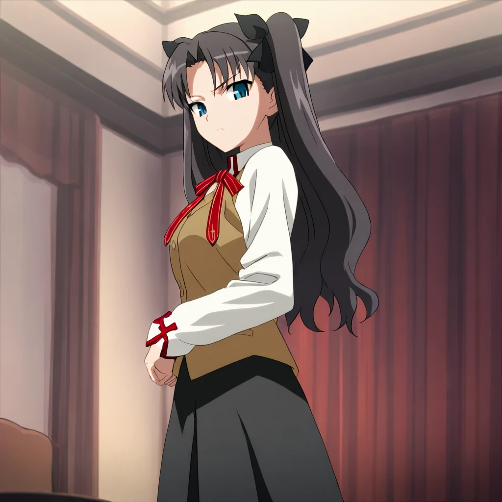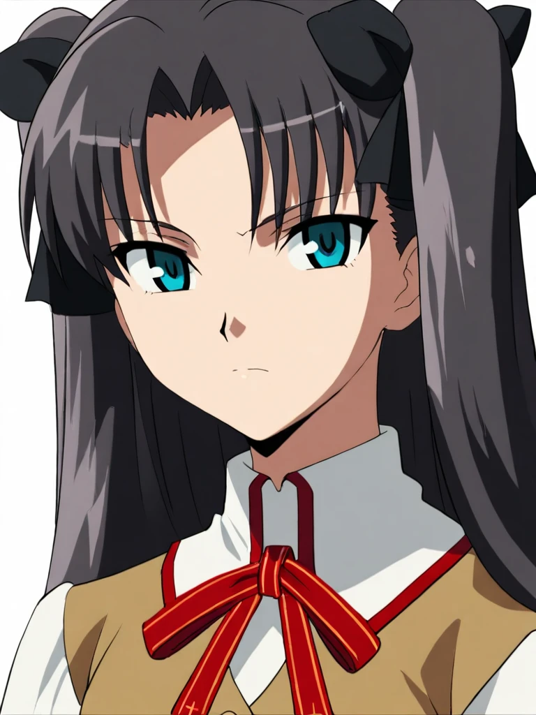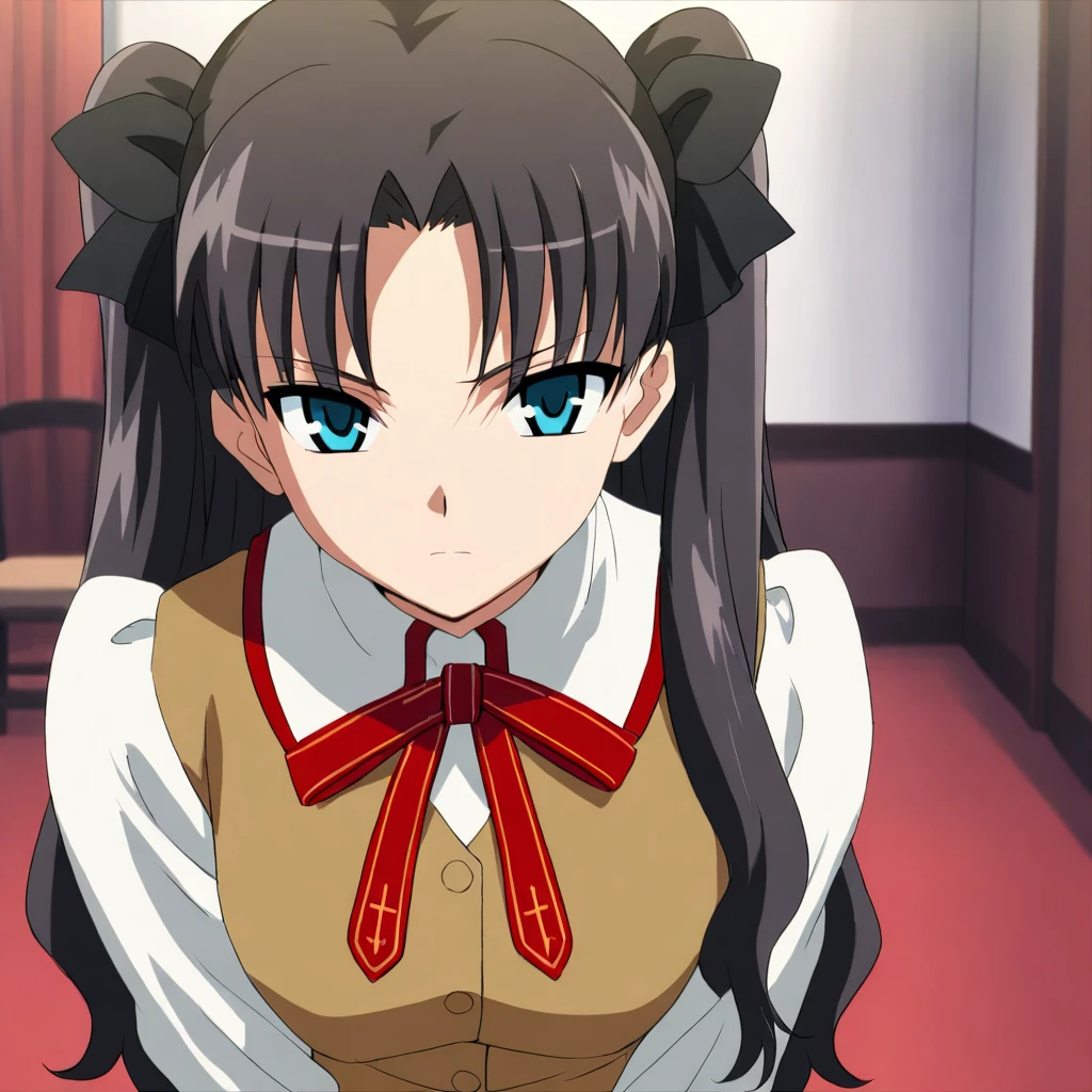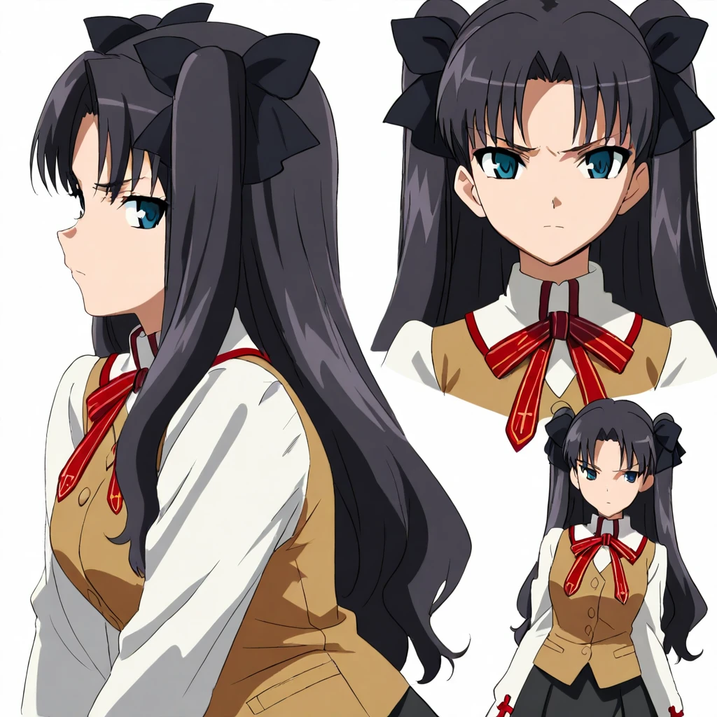 rintohsaka, black hair, long hair, hair bow, blue eyes
