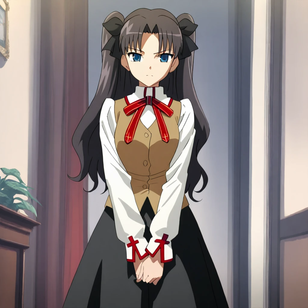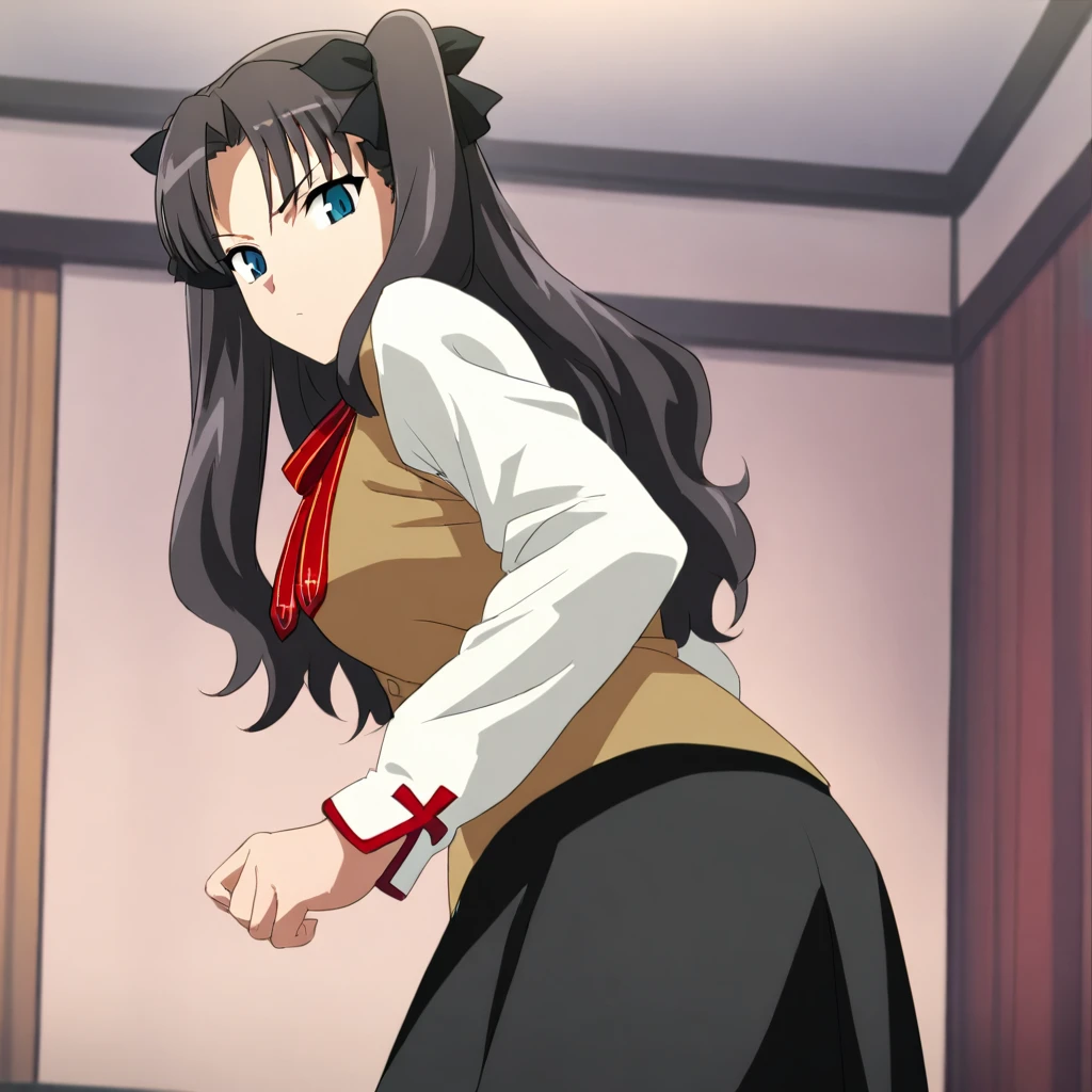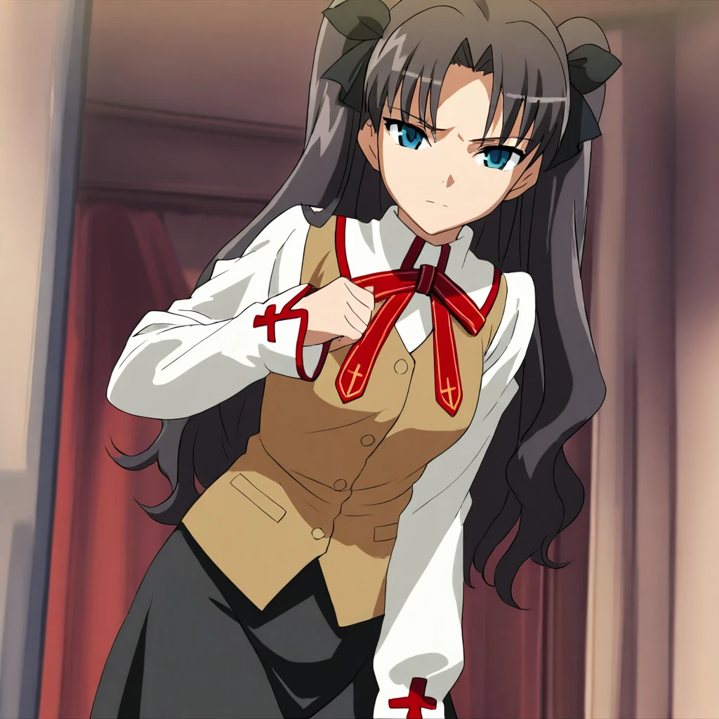 rintohsaka, black hair, long hair, hair bow, blue eyes