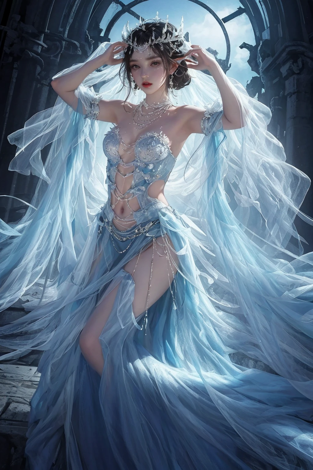 future0603,dress,Hair accessories,jewelry,navel,long skirt,necklace,veil,