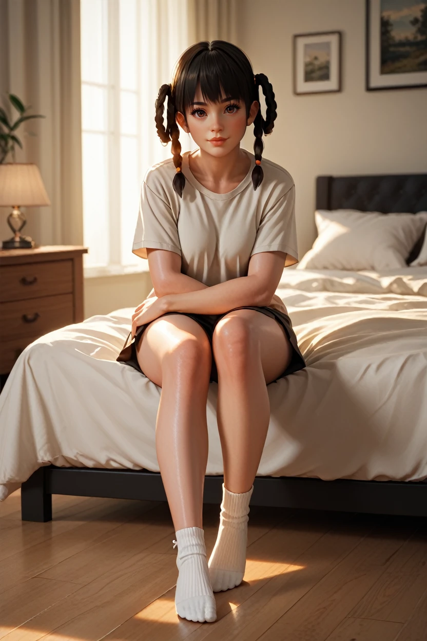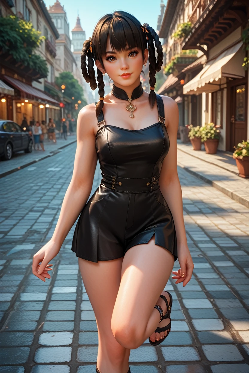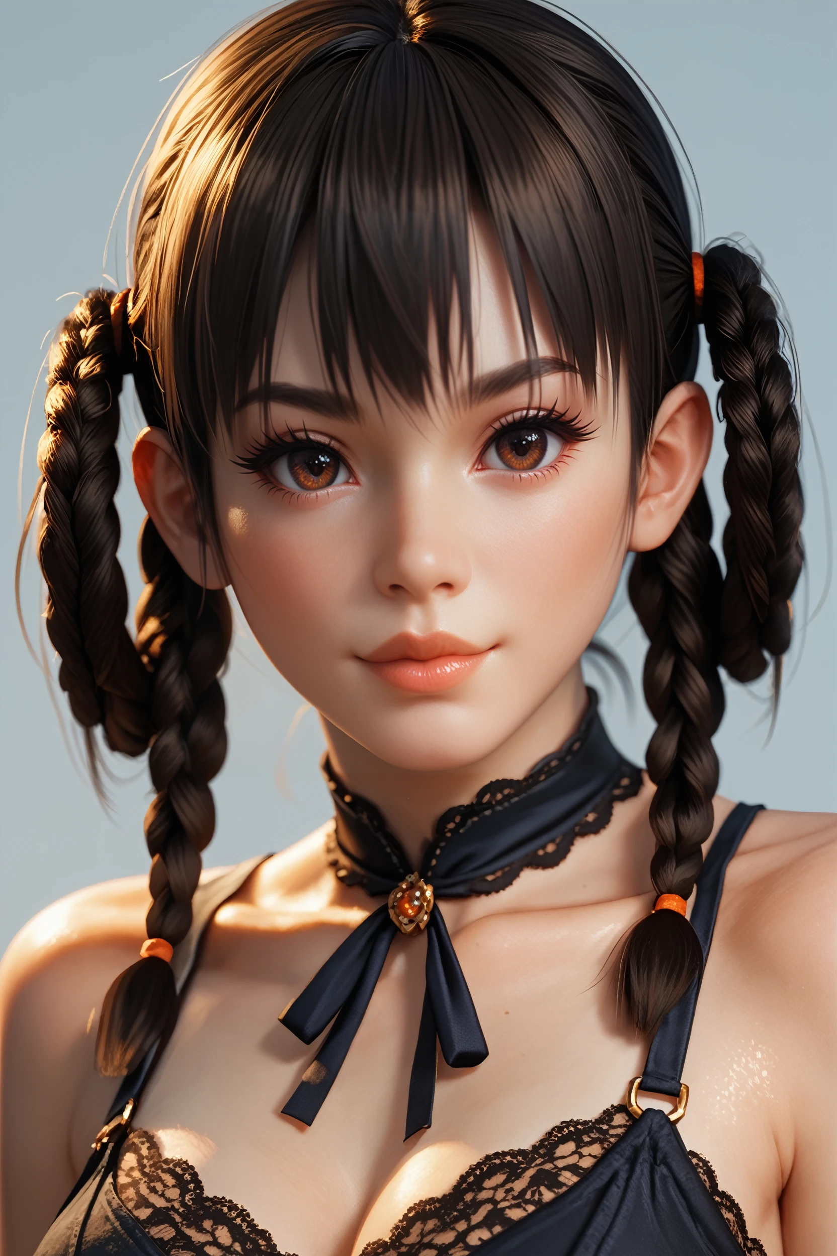 DOALeiFang, 1girl, black hair, brown eyes, twin braids