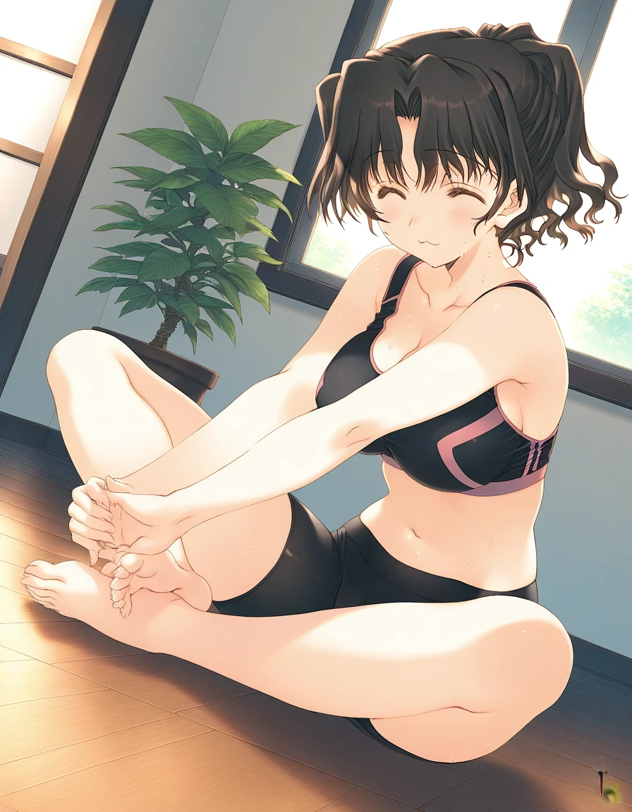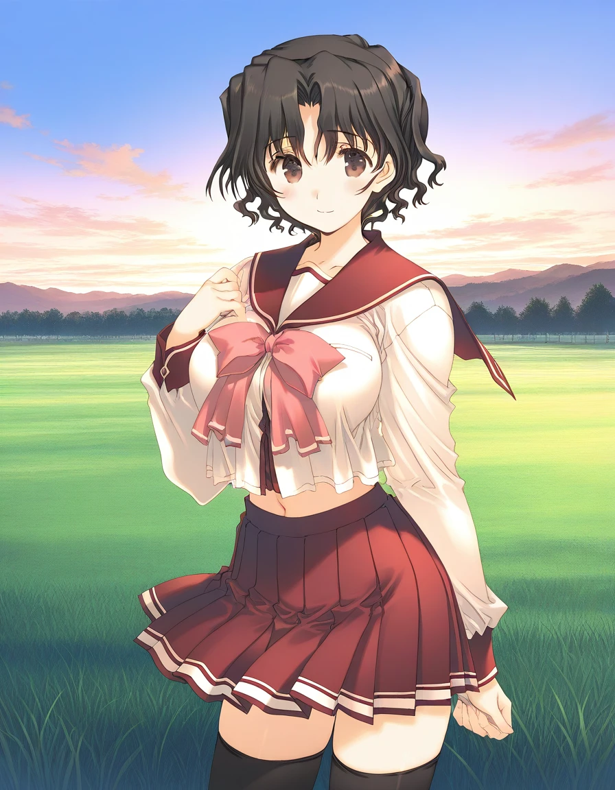 Yuzuhara_Haruka, 1girl,solo, short hair, black hair, brown eyes, wavy hair, large breasts, mitsumi misato style,