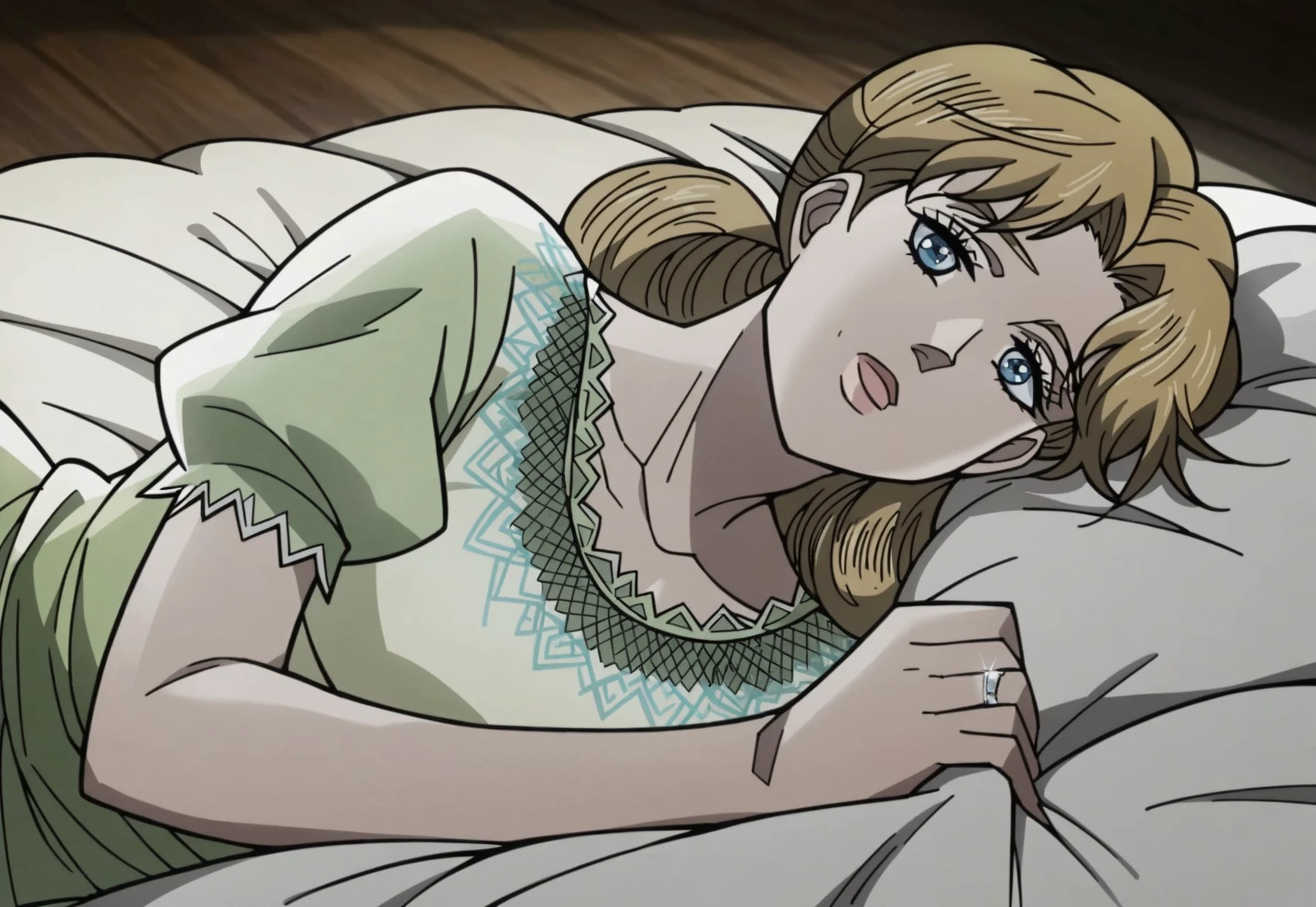 Light Green Nightgown, Puffy Sleeves, Silver Wedding RingTrigger Word (Pony)