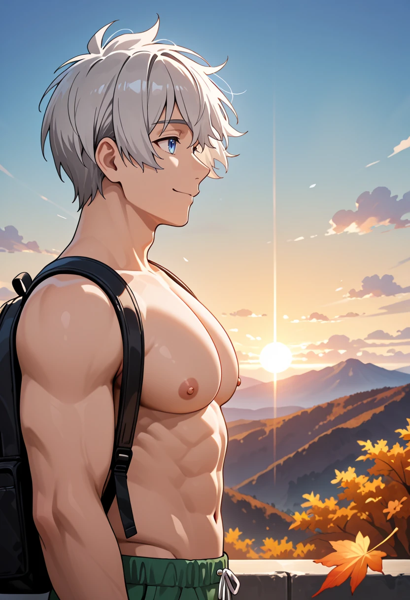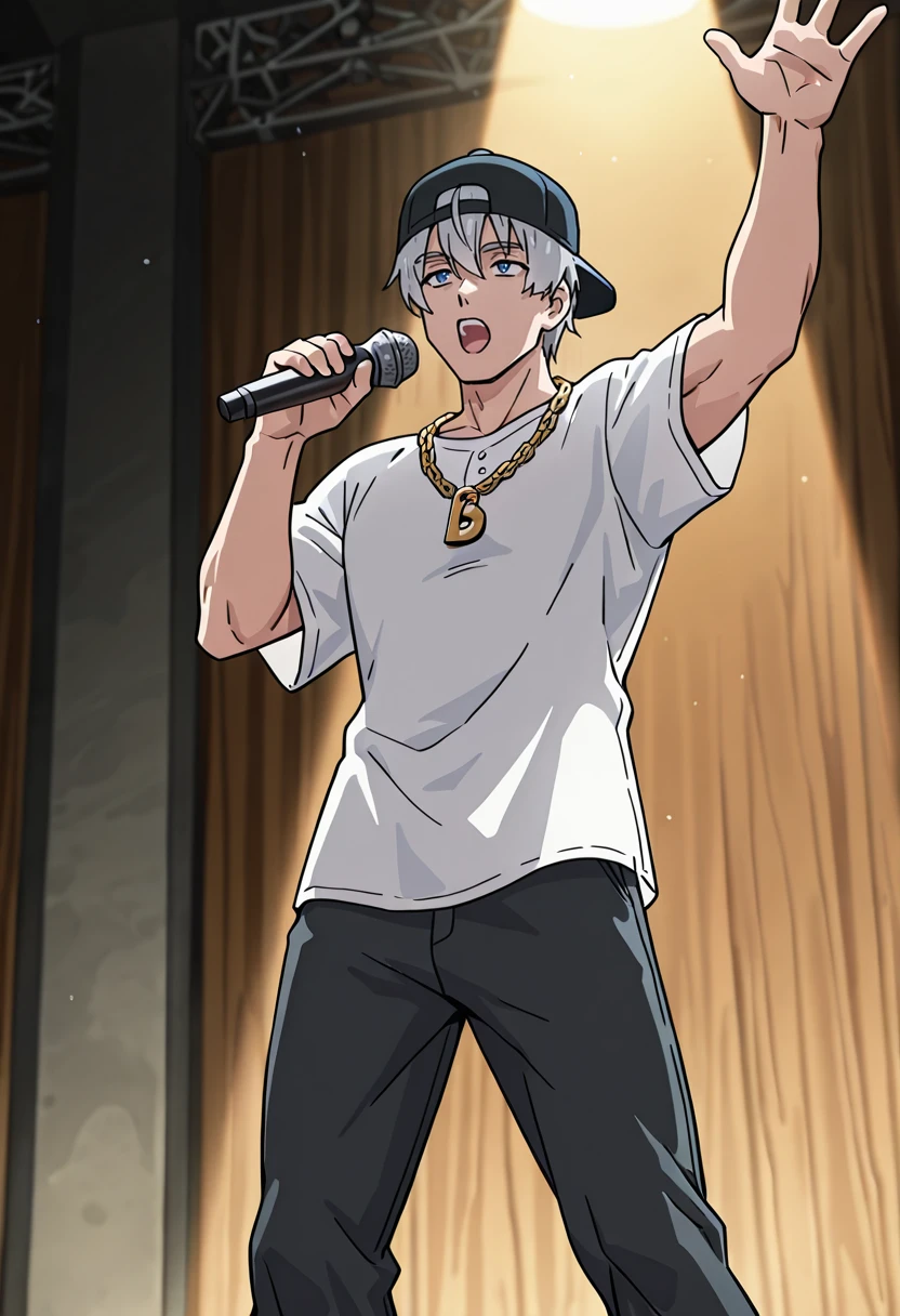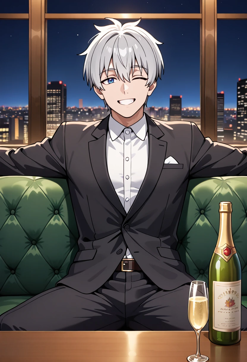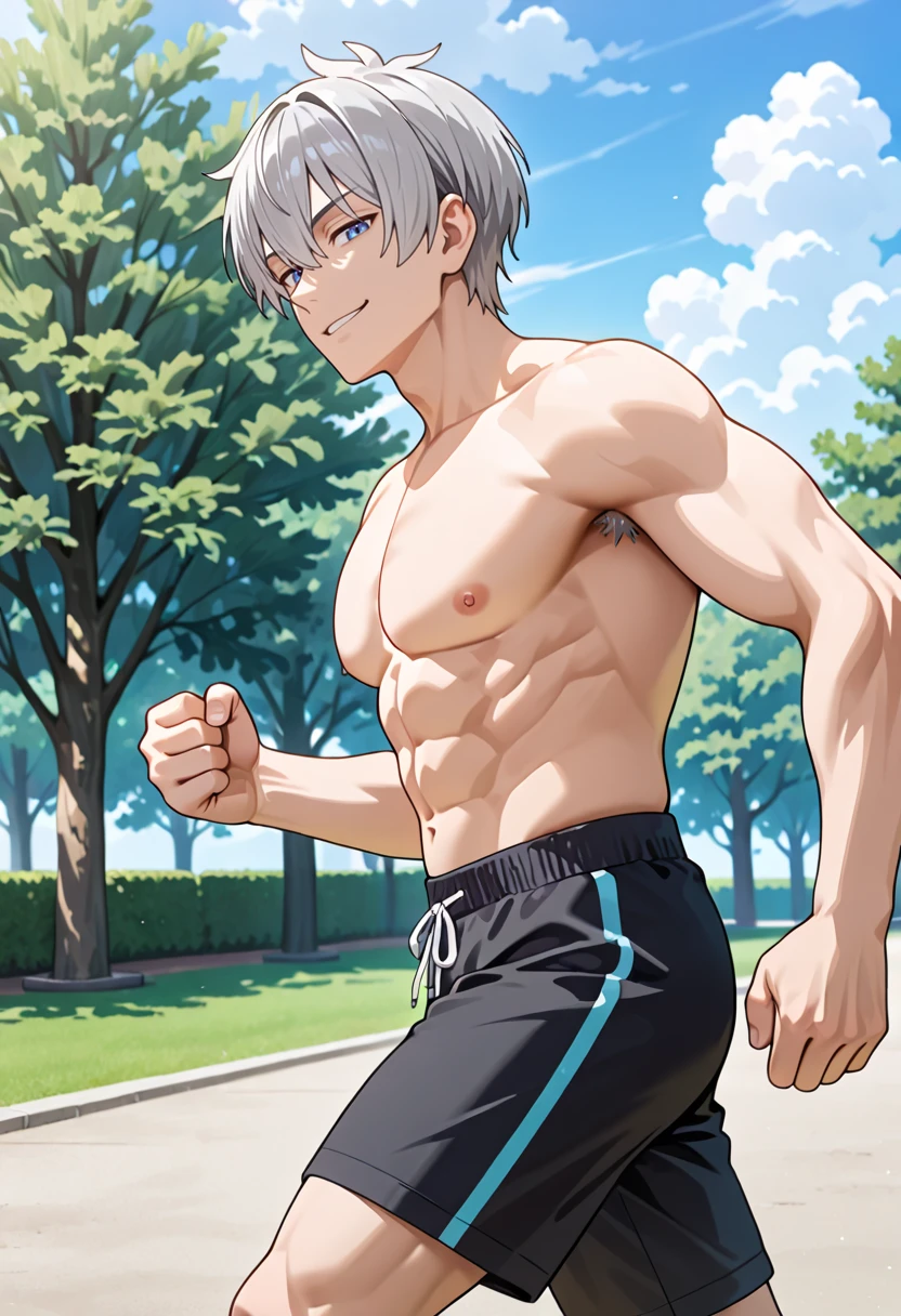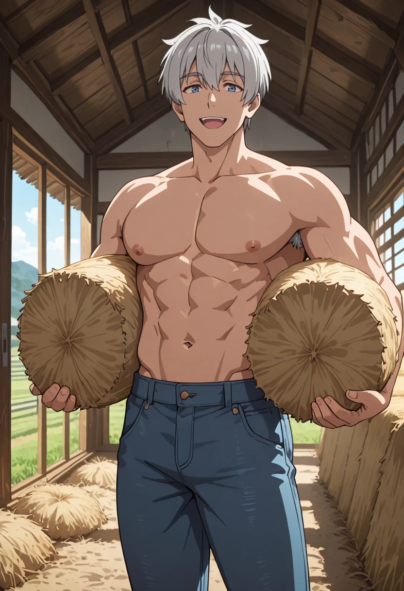 Shozo, 1boy, solo, grey_hair, blue_eyes, anime_screenshot