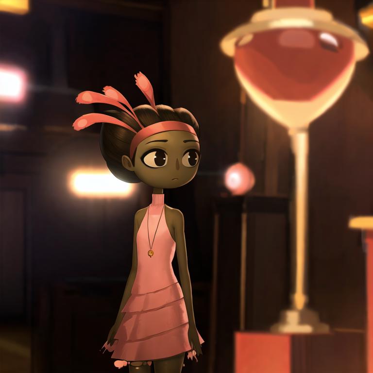 Helpful Positives: dress, dark skin, dark-skinned female, male focus, facial hair, oil pastel, rim lighting