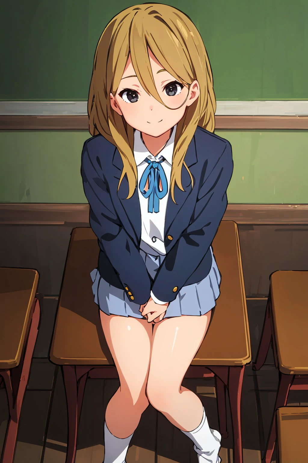sakuragaoka school uniform, blazer, grey skirt, white shirt, blue neck ribbon