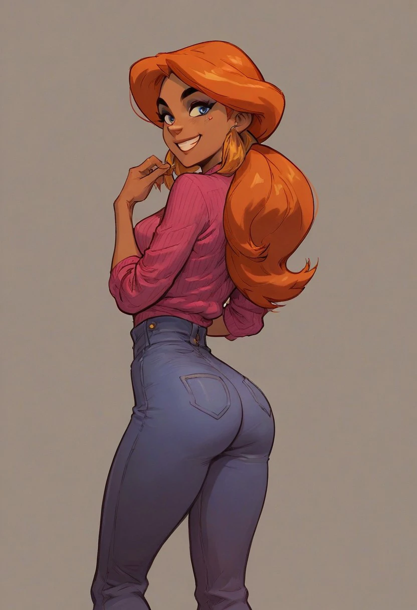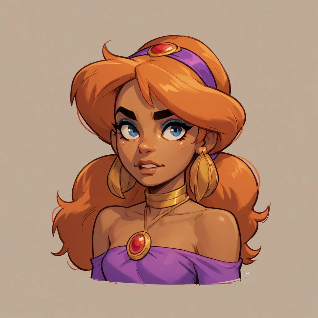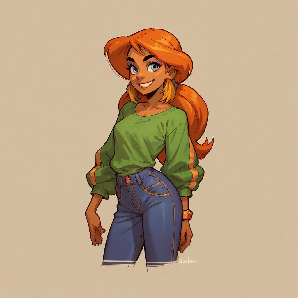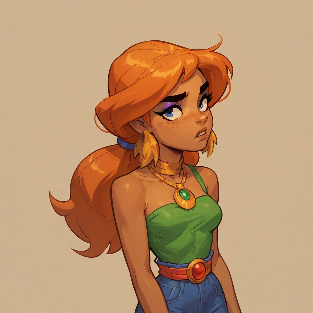Additional tags: Blue eyes, dark skin, orange hair,