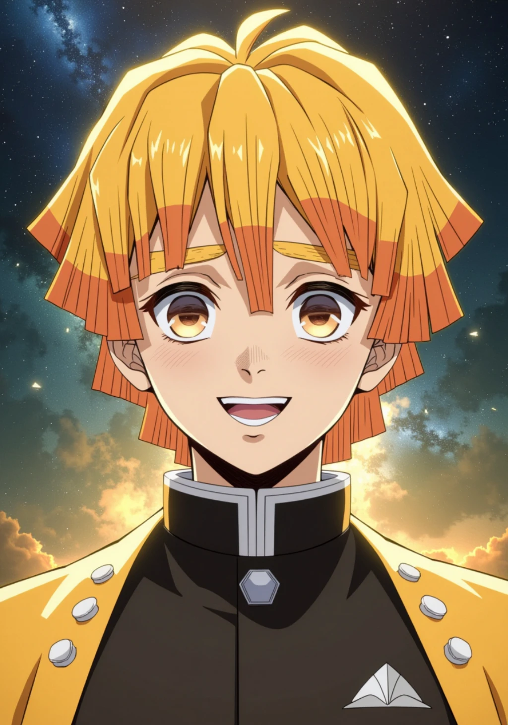 Zenitsu Agatsuma (我あが妻つま 善ぜん逸いつ Agatsuma Zen'itsu?) is one of the main characters of Demon Slayer: Kimetsu no Yaiba and along with Inosuke Hashibira, a travelling companion of Tanjiro Kamado and Nezuko Kamado. He is also a Demon Slayer in the Demon Slayer Corps.