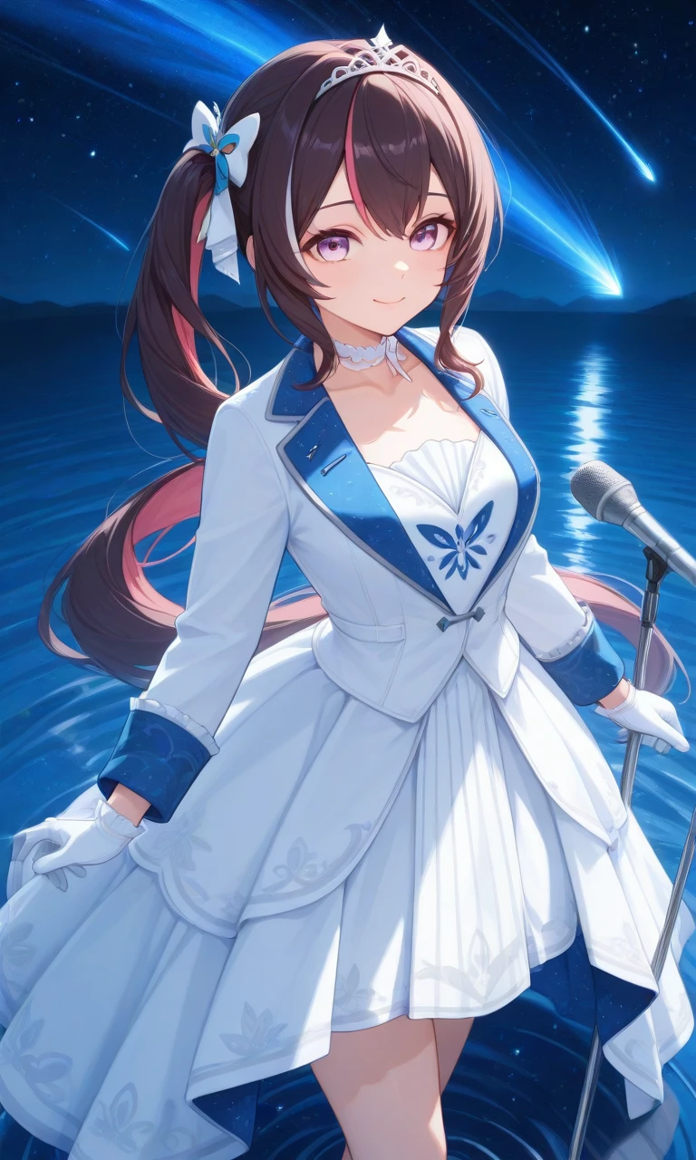 azk1princess, side ponytail, very long hair, tiara, hair bow, white choker, alt white dress, white jacket, long sleeves, white gloves, high-low skirt💎Dress outfit (jacketless) :