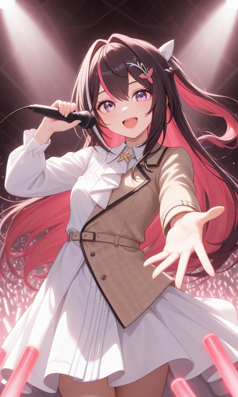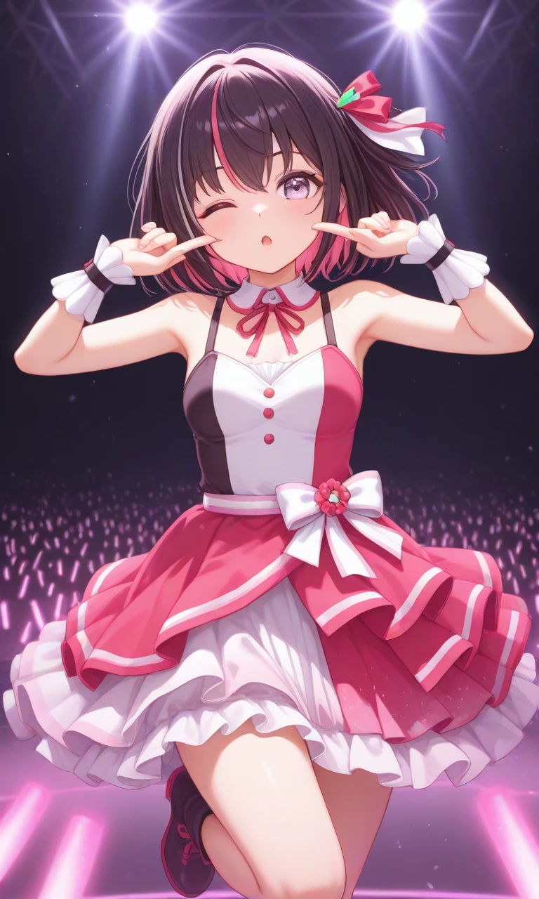 azk1third, short hair, hair ribbon, detached collar, neck ribbon, pink dress, sleeveless dress, multicolored dress, idol clothes, wrist cuffs💎Dress outfit :