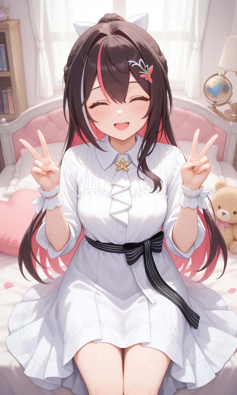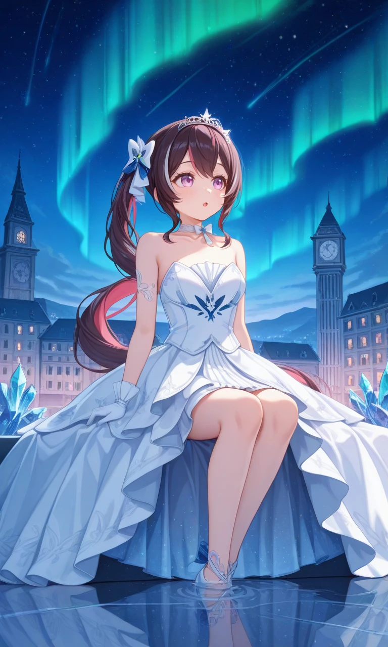azk1princess, side ponytail, very long hair, tiara, hair bow, white choker, alt white dress, strapless dress, white gloves, high-low skirt🧧New Year outfit :