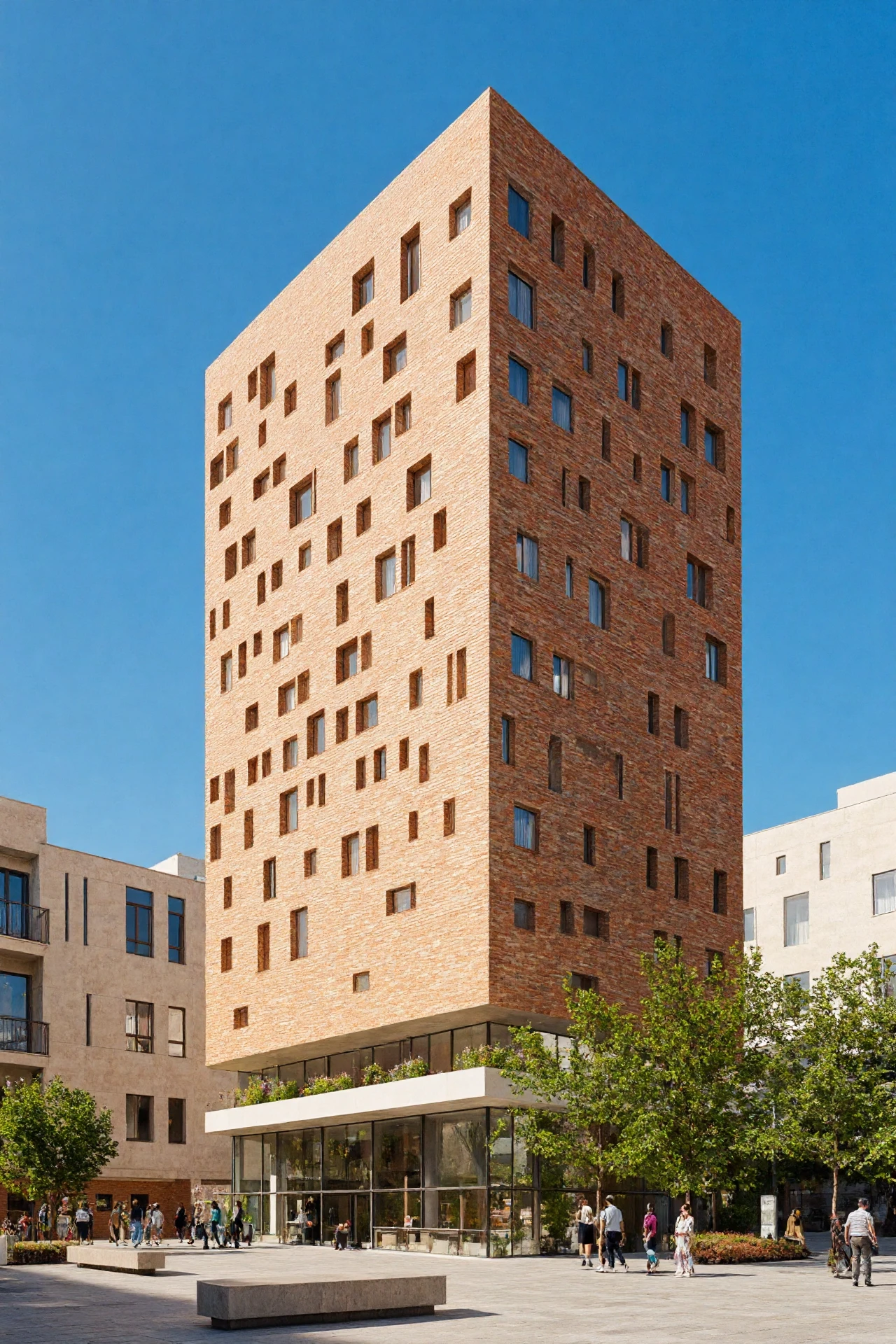 The model is trained to generate modern buildings with brick facades. You can also combine this LoRA model with others.