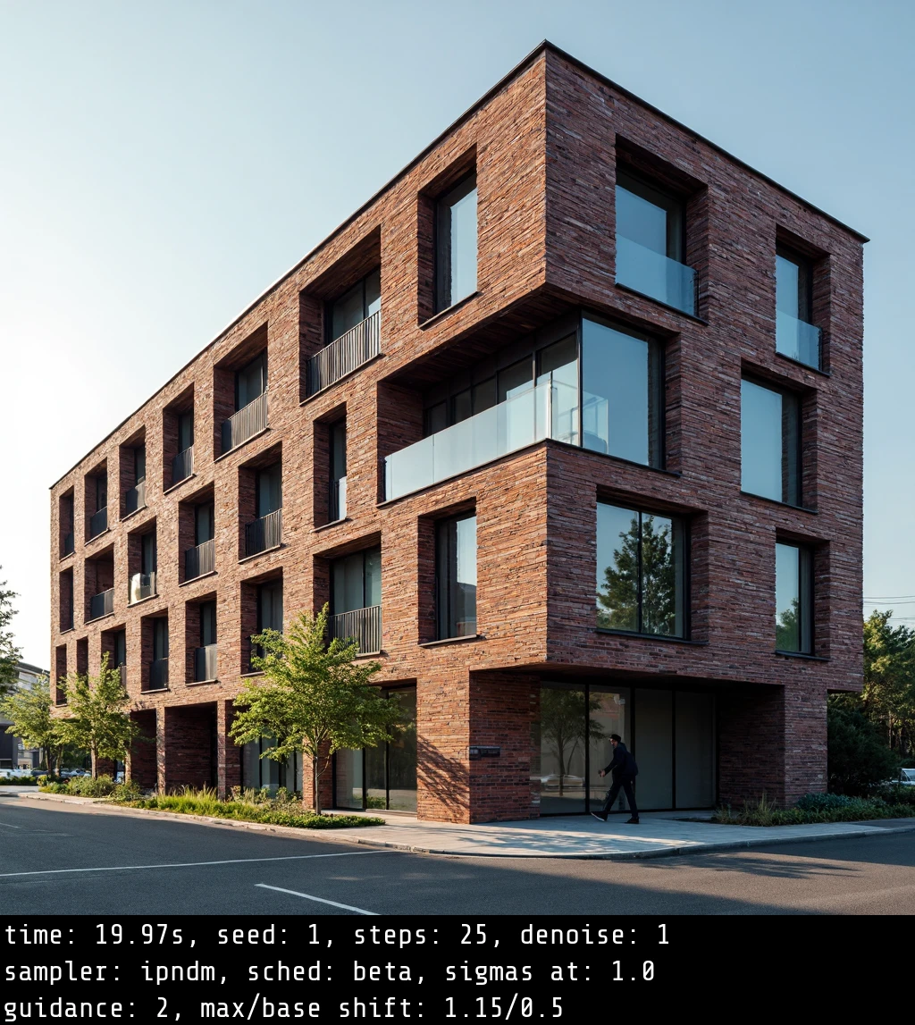 Recommended parameters: ipndm, beta, steps 20-30, guidance 2.0 - 4.0