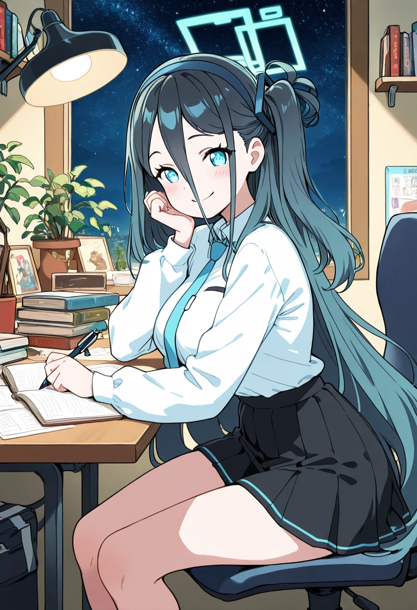 zzArisu, black hair, long hair, one side up, hairband, aged up, large breasts,