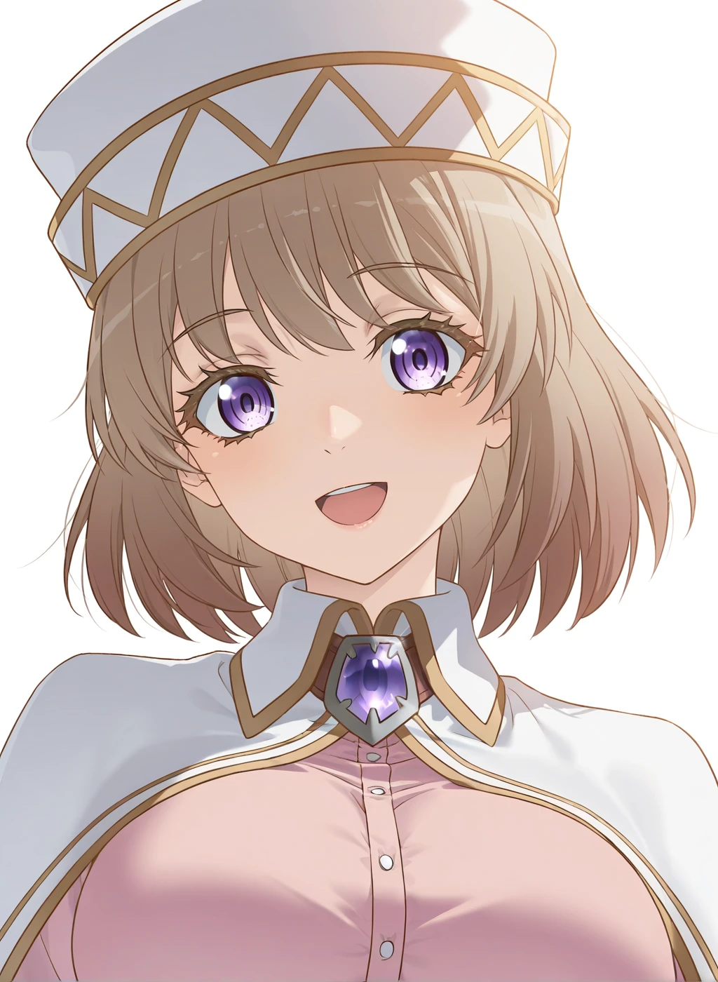 alicia edelsia, isekai ojisan, medium hair, brown hair, purple eyes, large breasts