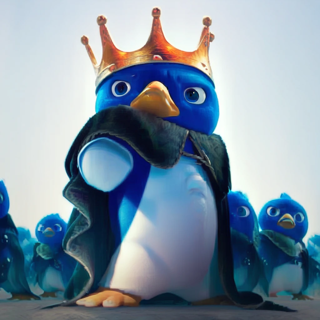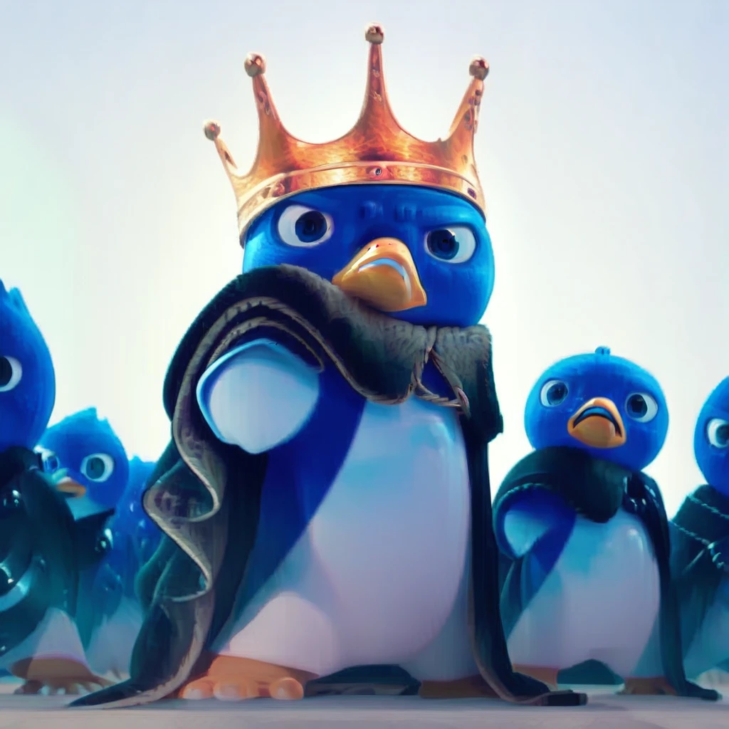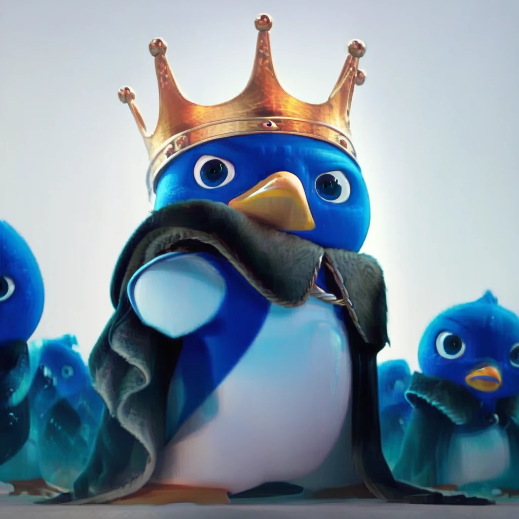 Tags: royalty, avian, cape, king penguin, yellow beak, multicolored body, king, two tone body, headgear, white belly, black cape, crown, cloak, yellow feet, white body, blue eyes, male, white sclera, bird, talons, clothing, penugin, blue body