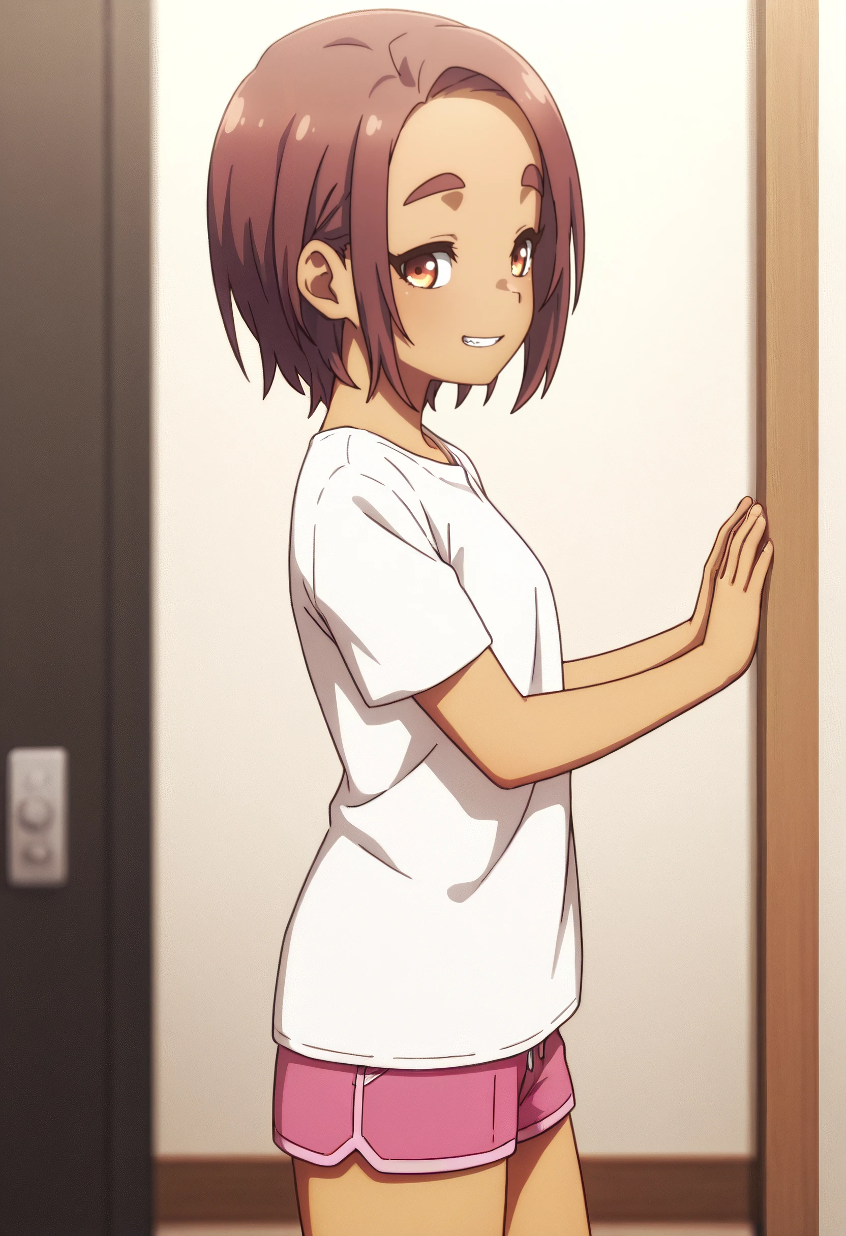 YaeShorts, shirt, t-shirt, white shirt, short sleeves, pink shorts, shorts, short shorts,