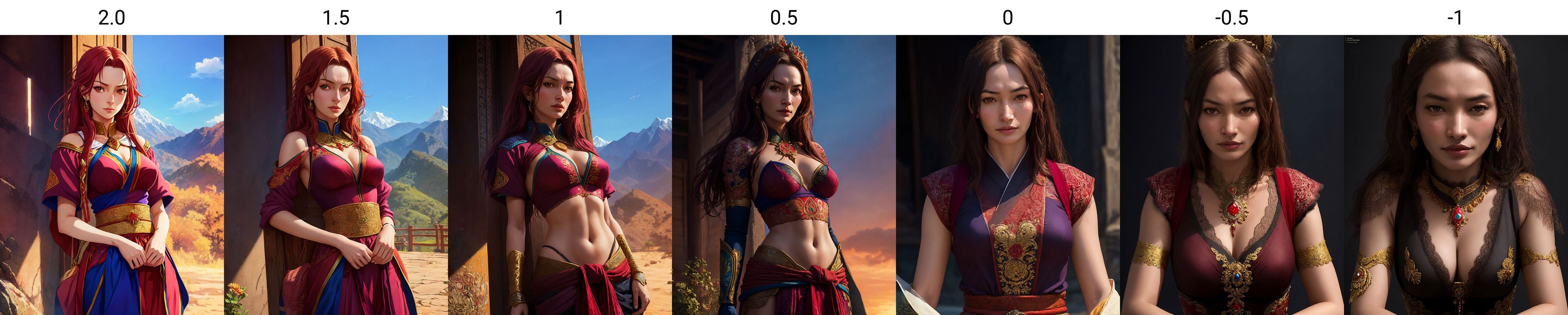 可用權重在+2~-2,建議權重為+2~-1.0,正值提供動漫畫的傾向,副值提供真實的傾向