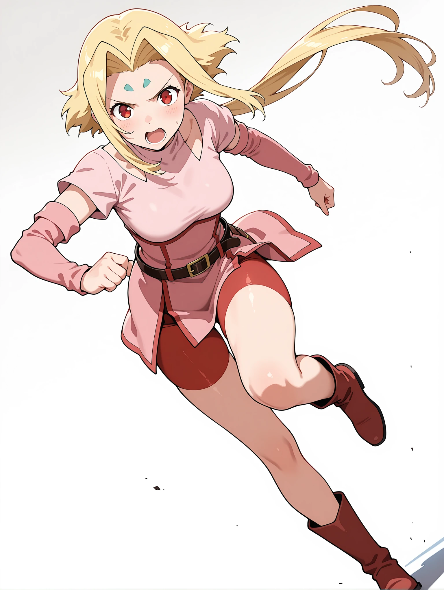 f_clothes,turtleneck,clothing cutout,pink shirt,short sleeves,arm warmers,belt,short dress,red bike shorts,pelvic curtain,boots,