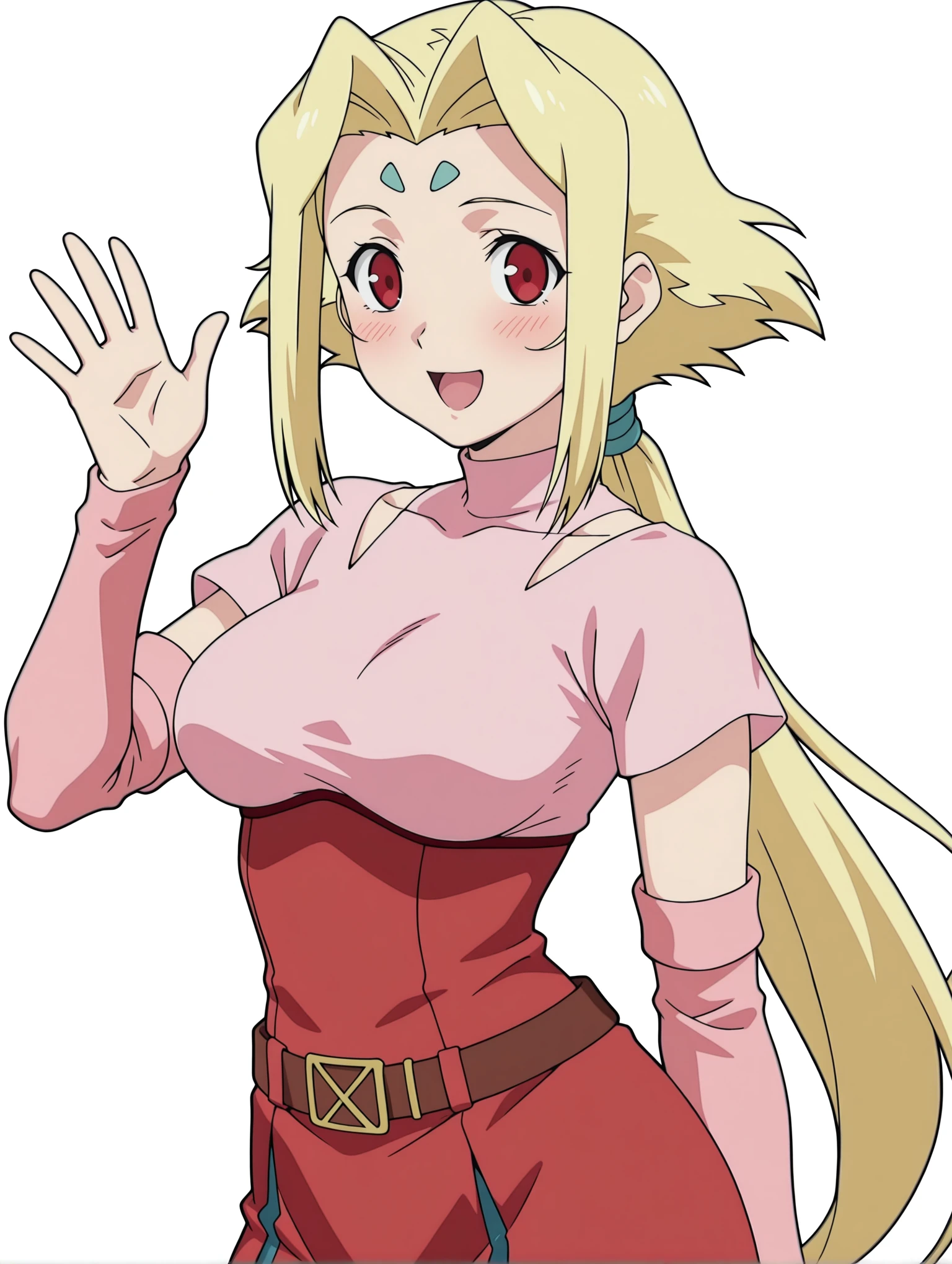 トリガーワード・fine_e_l,blonde hair,forehead mark,short hair with long locks,long hair,low ponytail,very long hair,