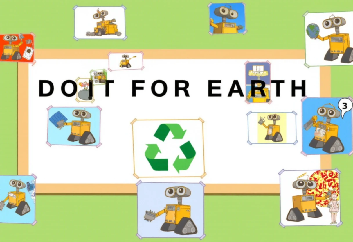 This is a digital drawing in cartoon style, featuring a collage of various illustrations of (SUBJECT). The background is a (COLOUR) wall with a white (COLOUR) at the center, which bears the phrase "(TEXT)" written in bold, black letters. The board is bordered by a (COLOUR) frame. The wall is adorned with numerous illustrations, each depicting (SUBJECT/OTHER THINGS).